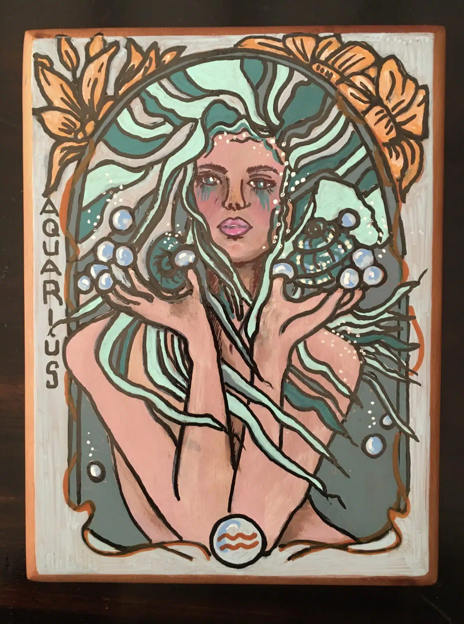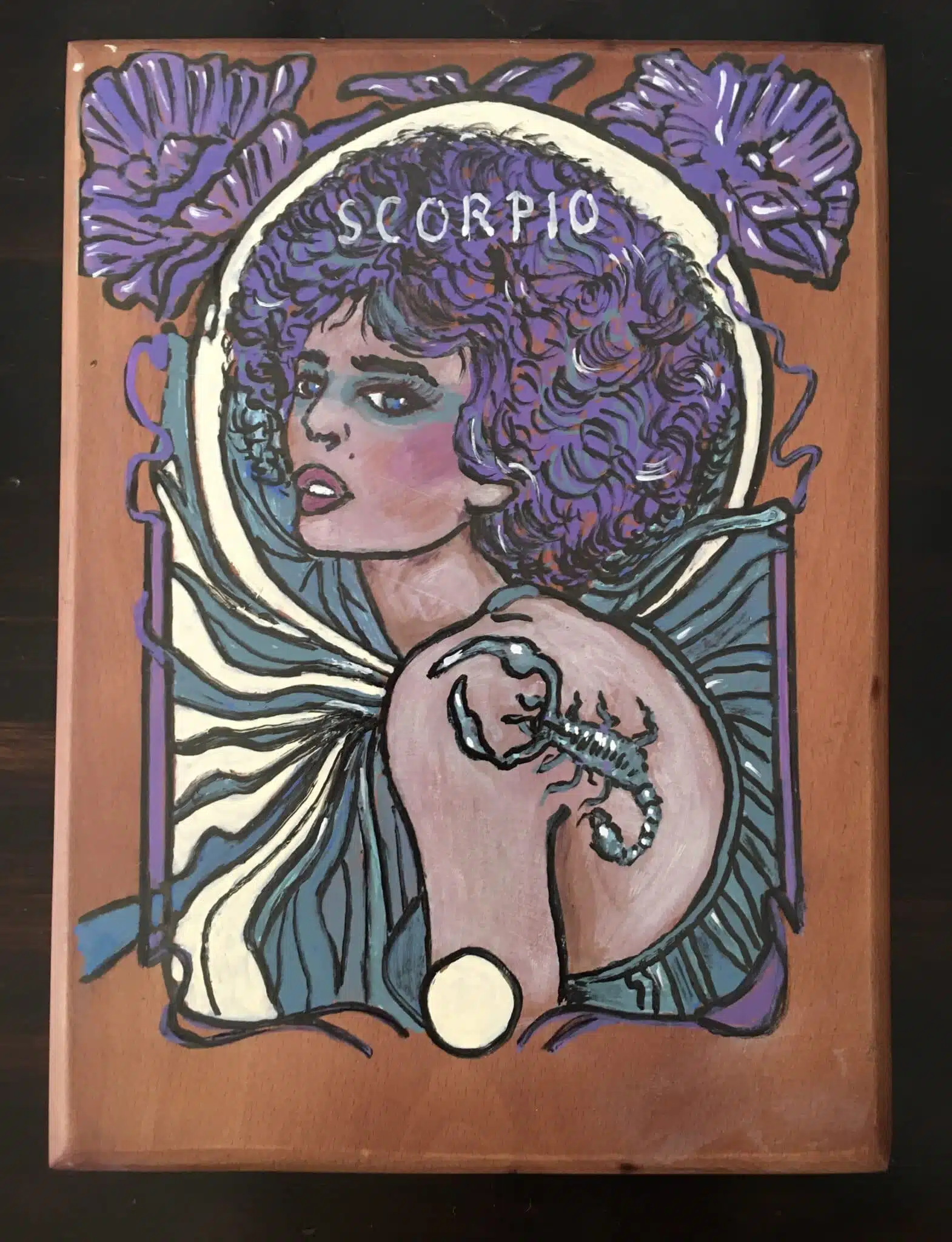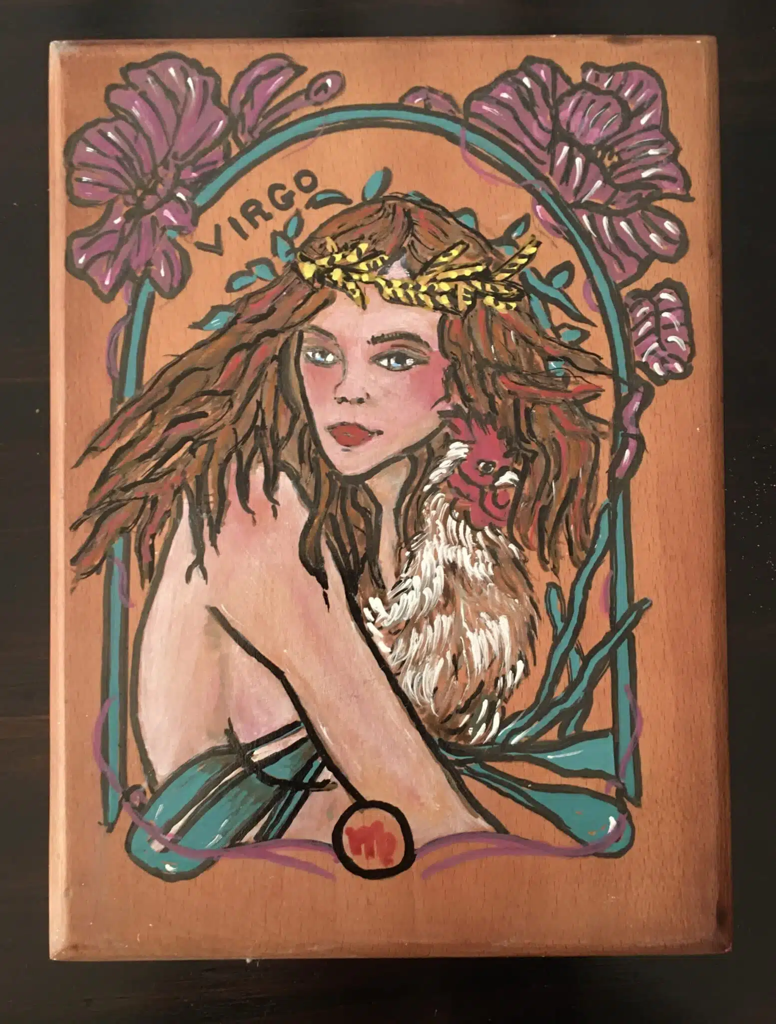 Acrylic painted on bleech wood. Choose your sign and we create the design. Only for women.