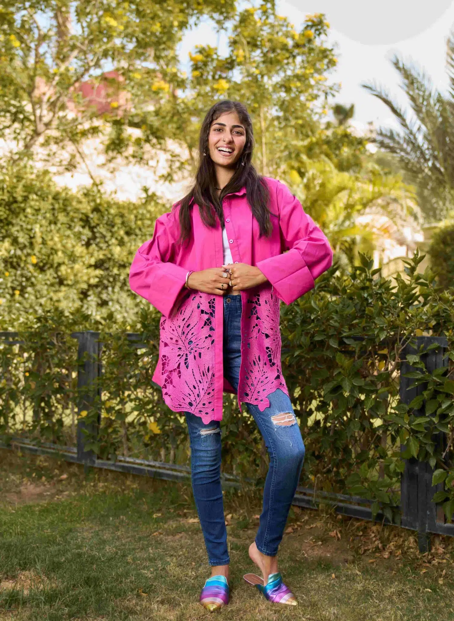 Hot Pink guipure shirt