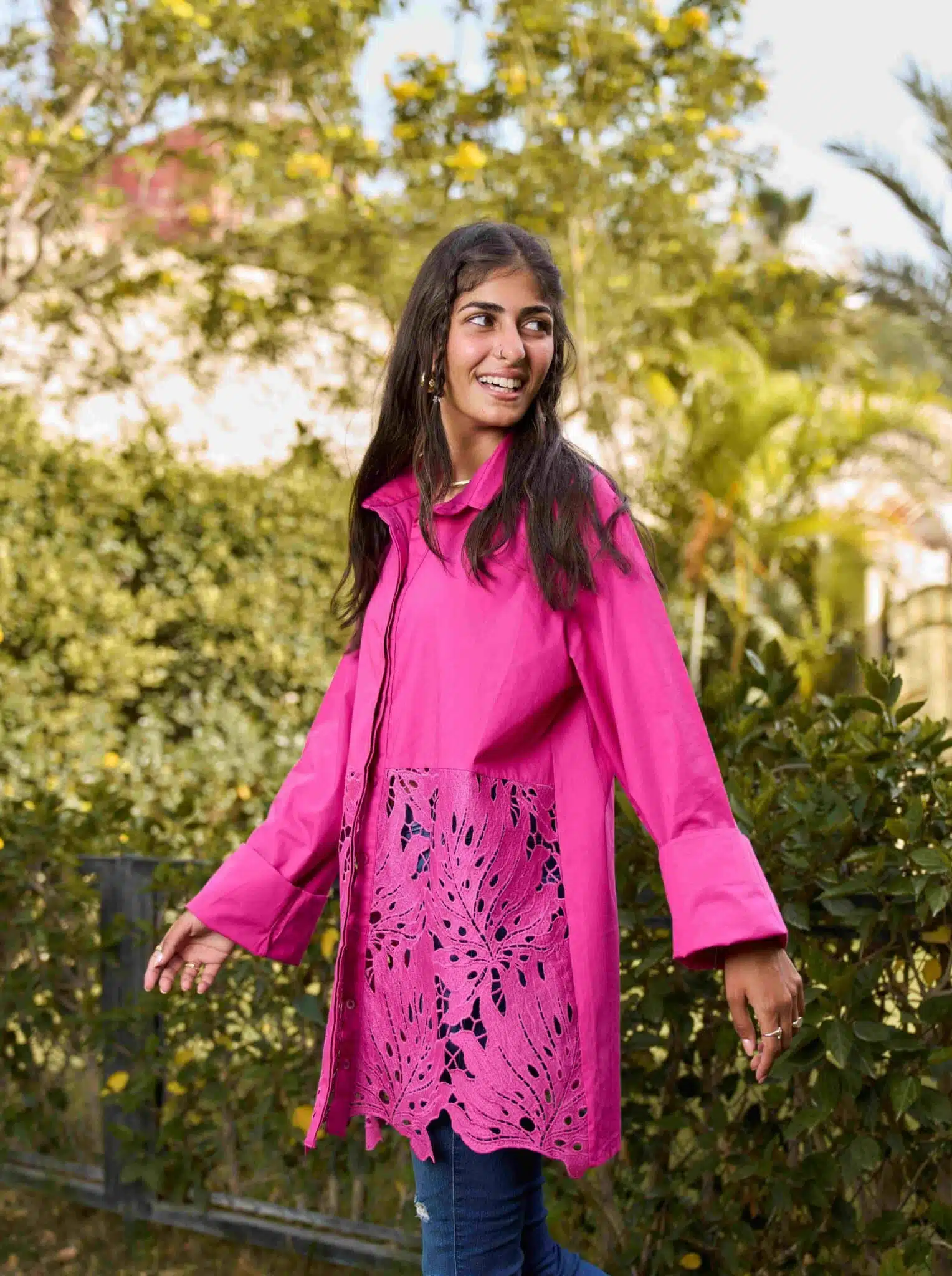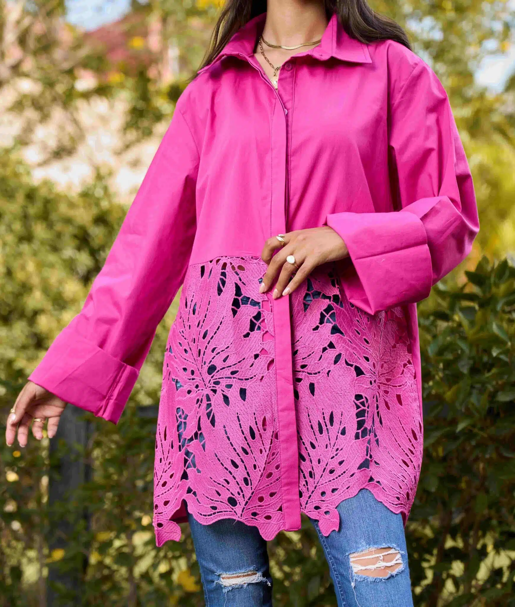 - Hot Pink poplin guipure shirt