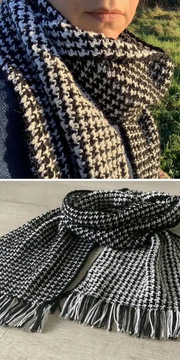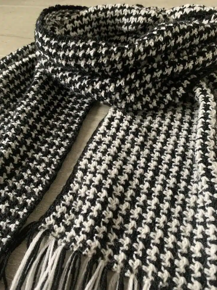 Handmade scarf back x white , hounds tooth style