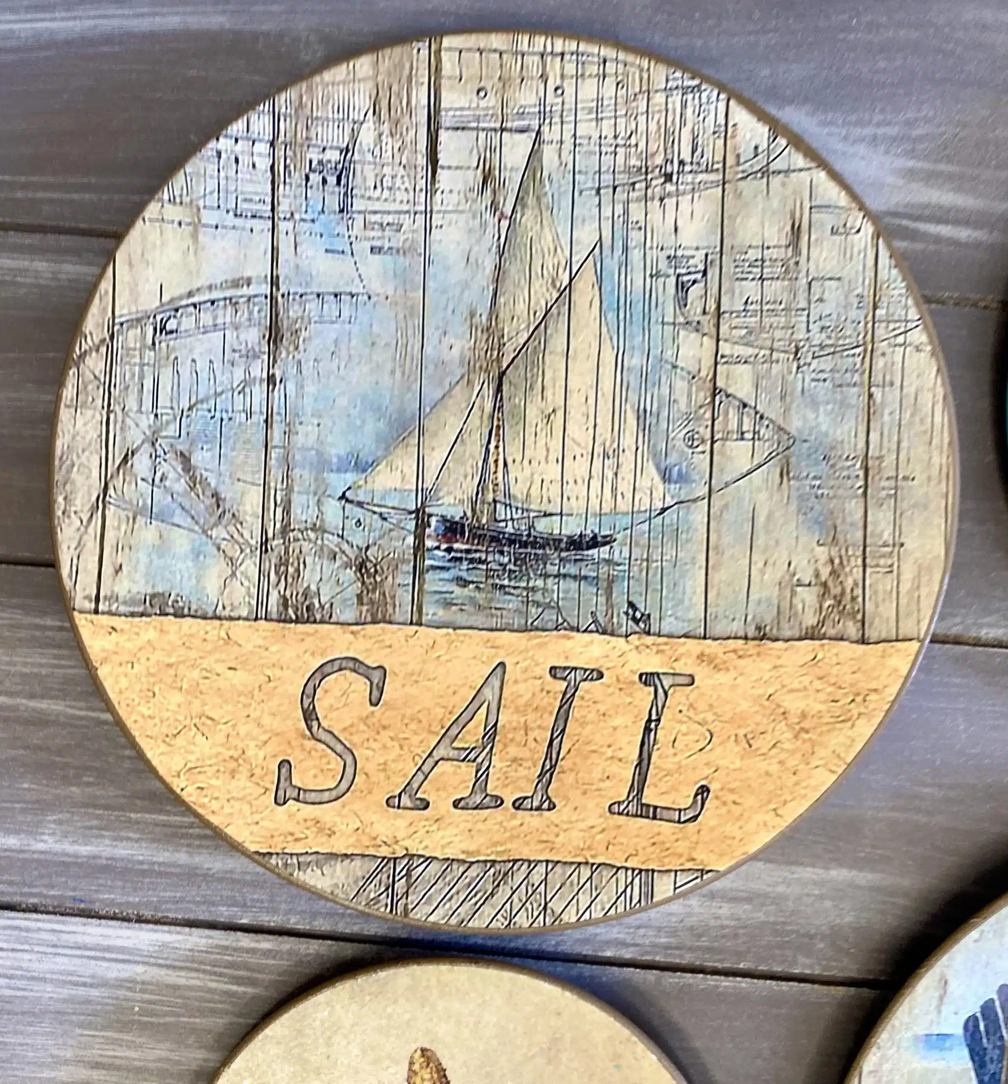 Decoupaged wall plates for summer