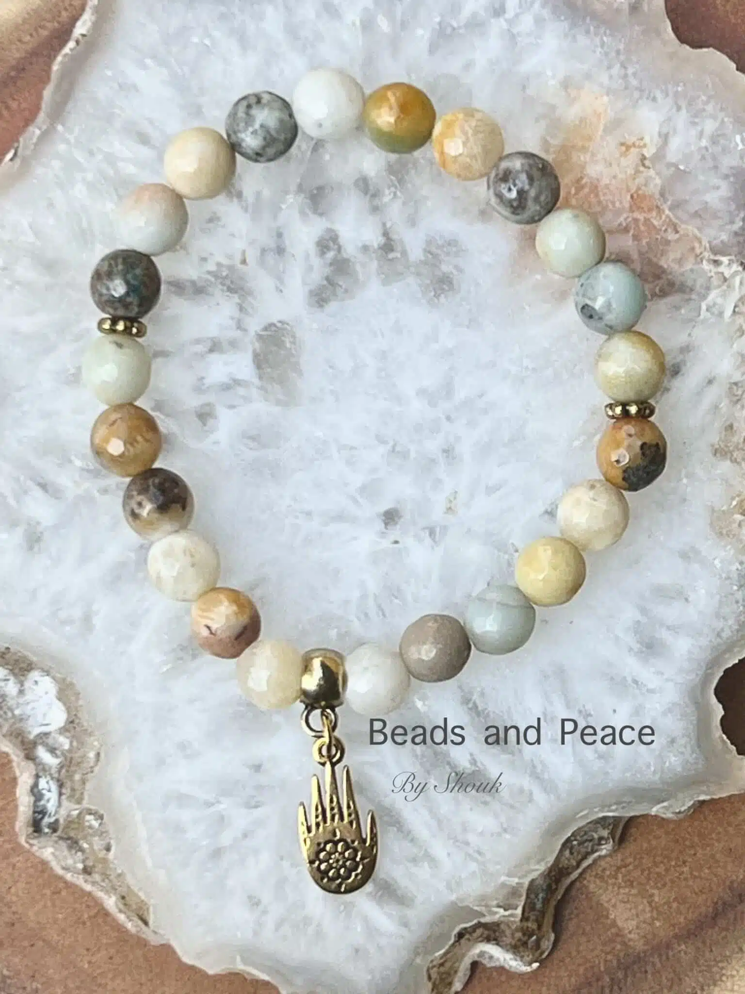 It’s gorgeous handmade bracelet made with 8mm Indian agate beads, gold plated Fatima’s hand charm, stretch bracelet made with high quality elastic cord to make it easy for you to wear, please roll it not pull it.