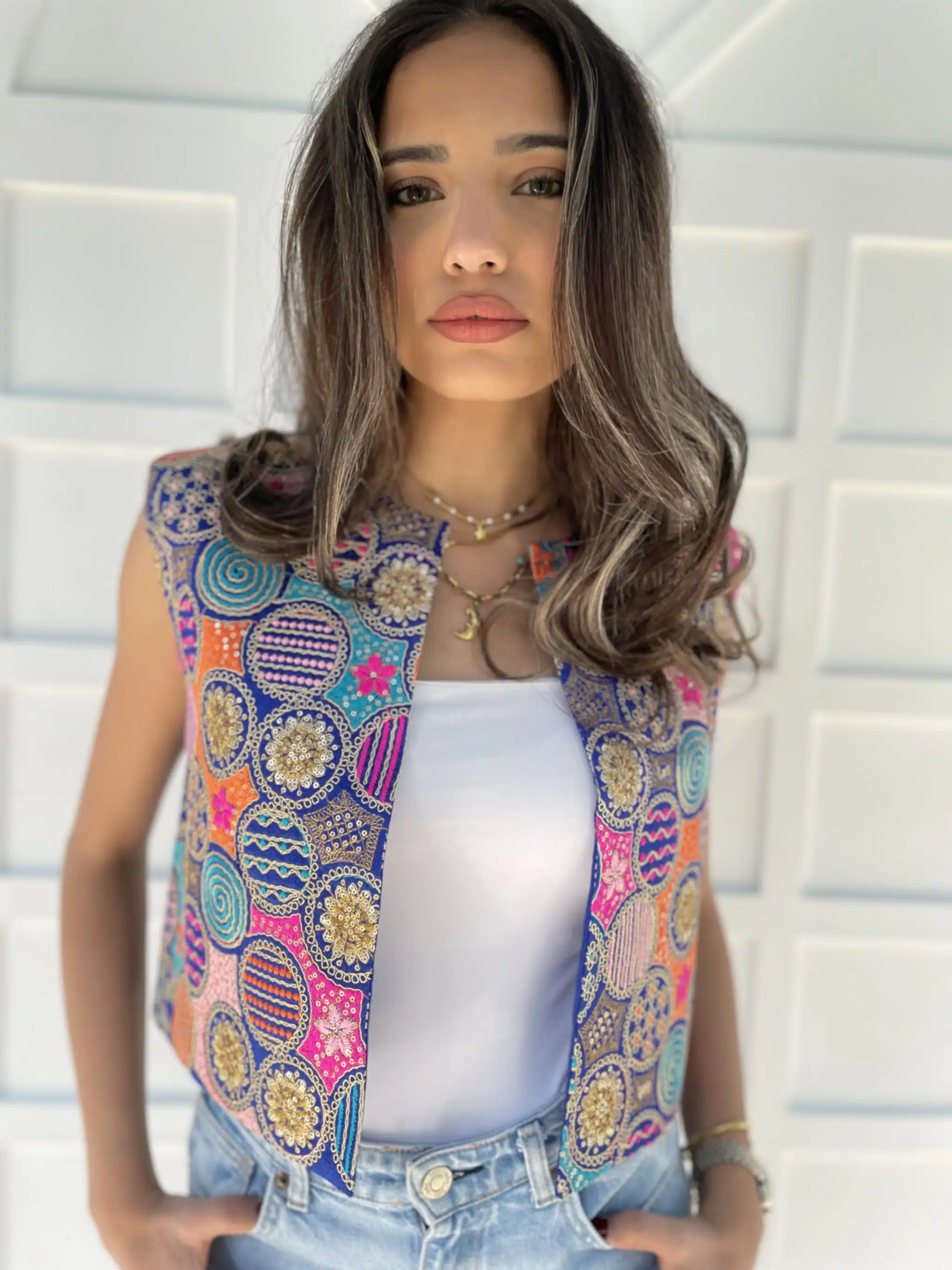 Indian embroidery blue vest