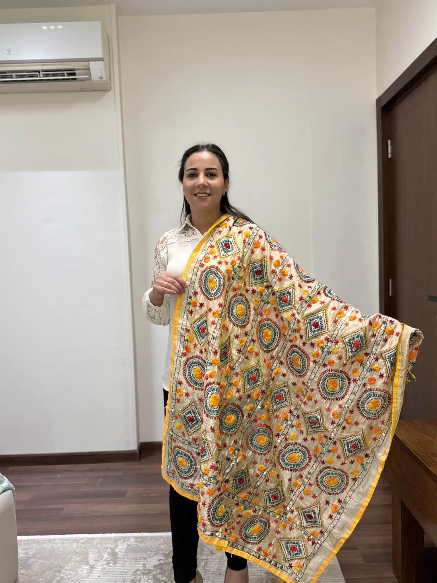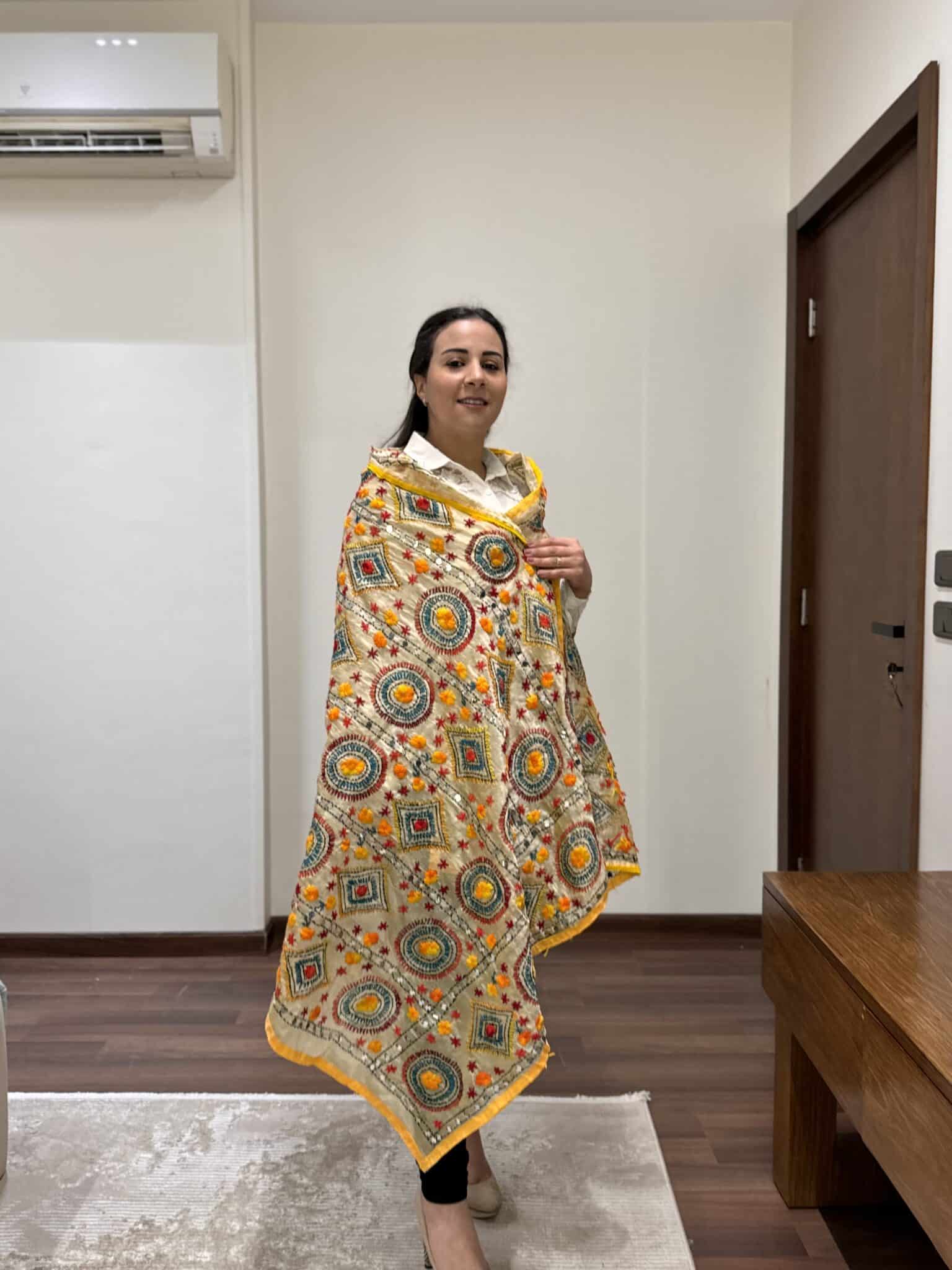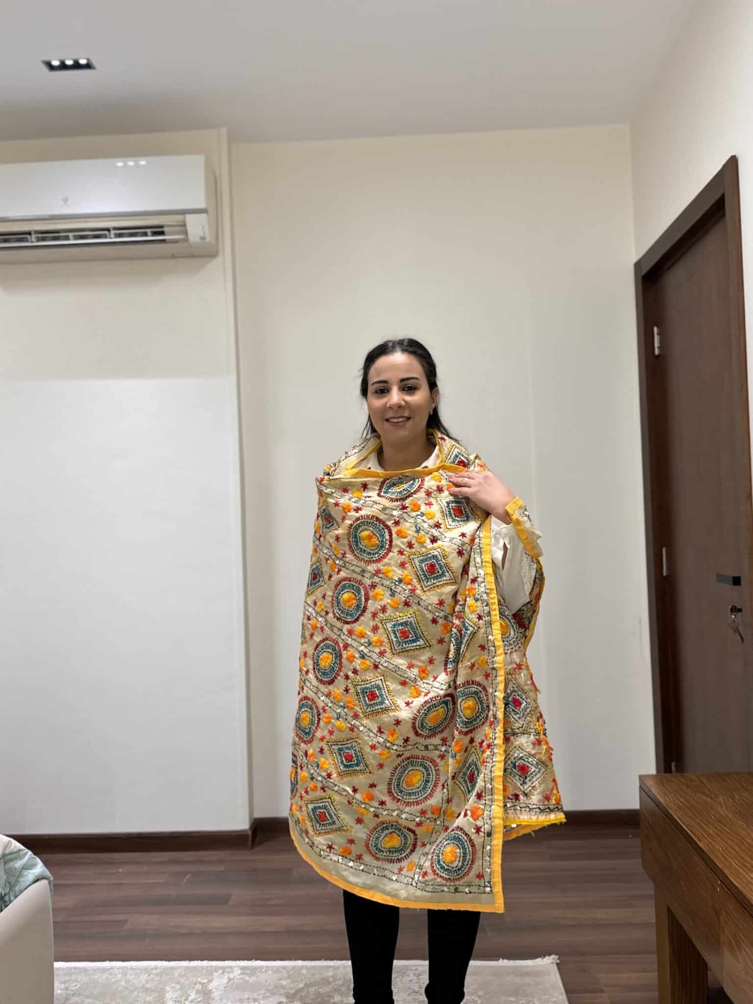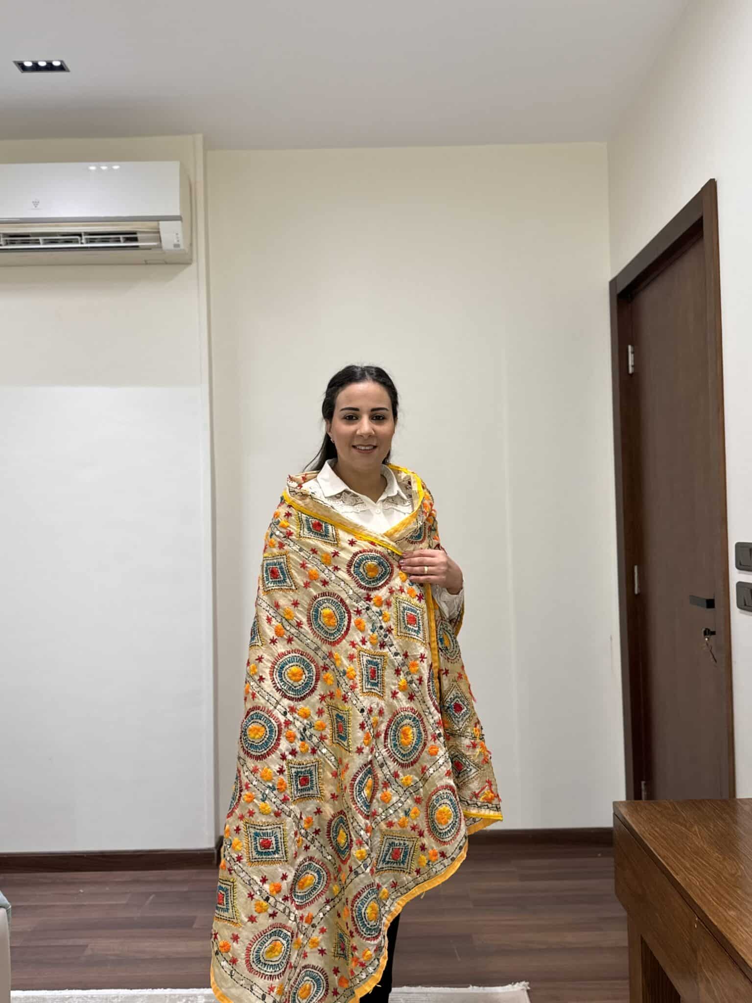 Indian embroidery yellow shawl