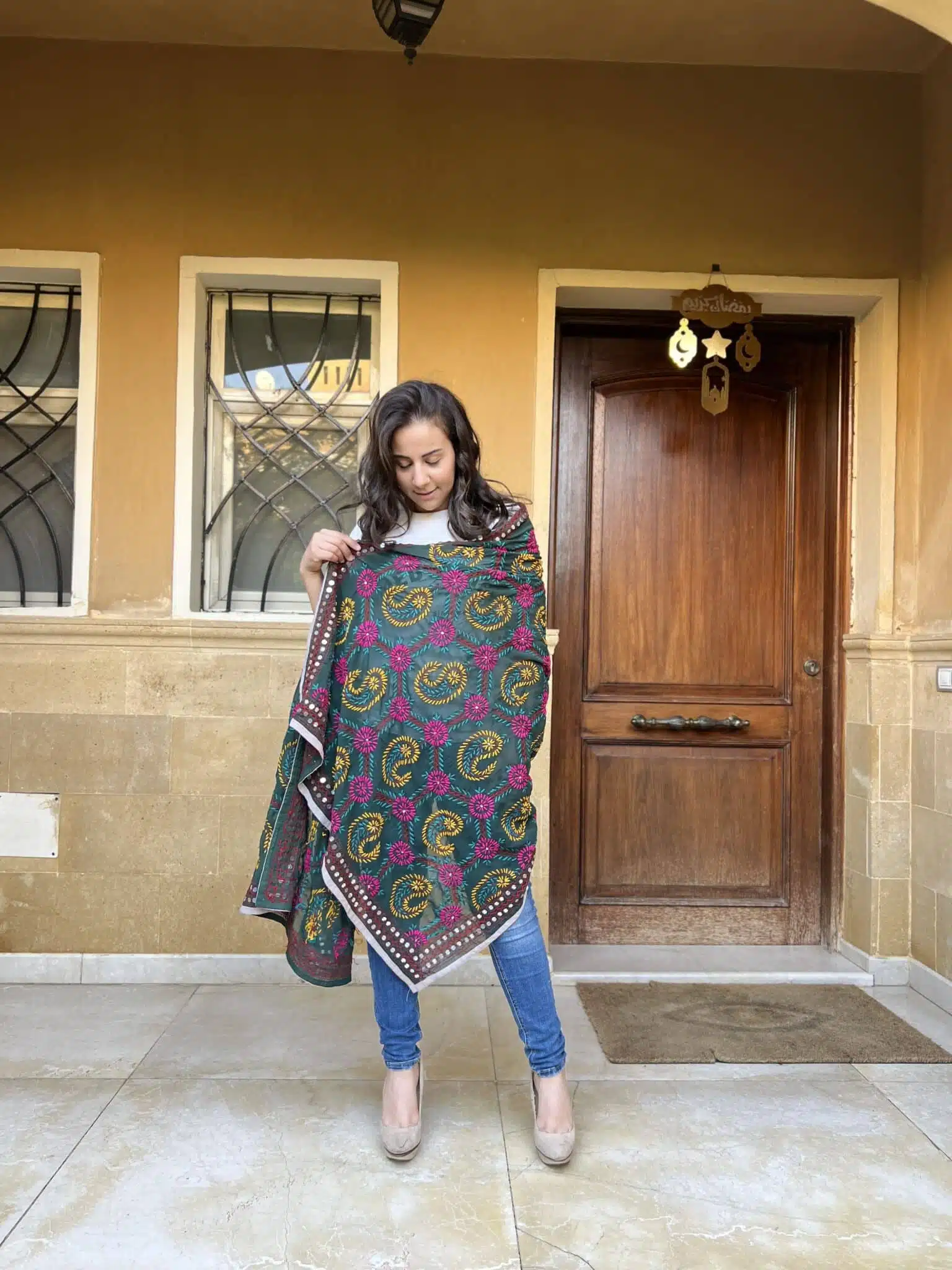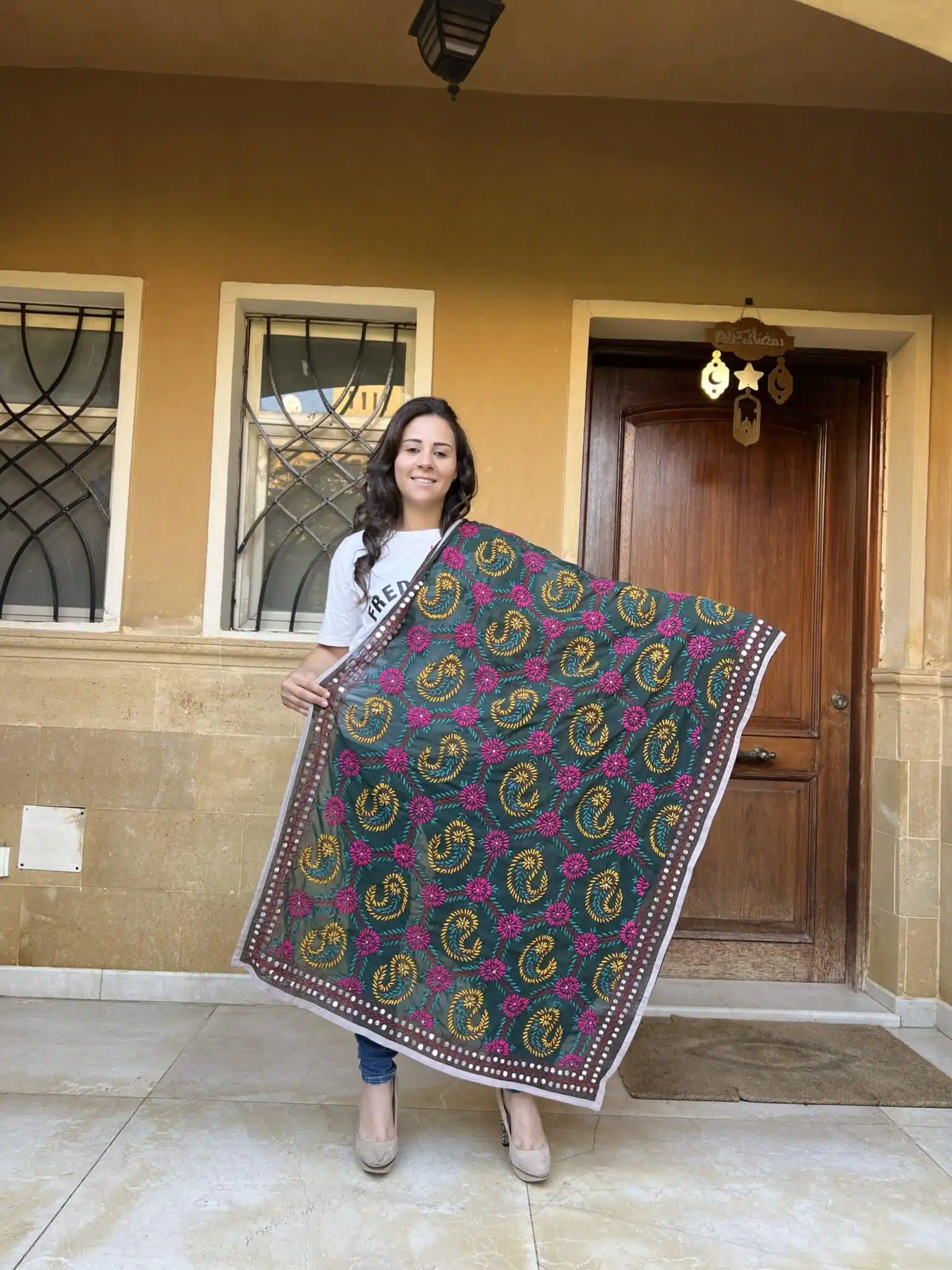 Handmade Indian embroidery shawl
