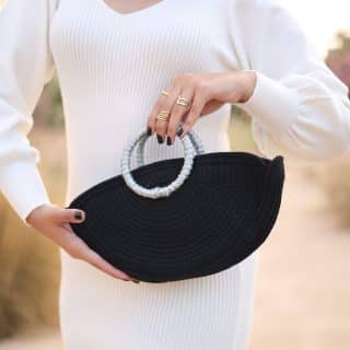 This unique, sustainable bag is crafted with eco-friendly braided rope, embracing both style and environmental consciousness. Designed with a compact 20 cm width, it’s perfect for holding your essentials in a chic, minimalistic form. The intricate sewing pattern adds durability, making it a stylish companion for any occasion.