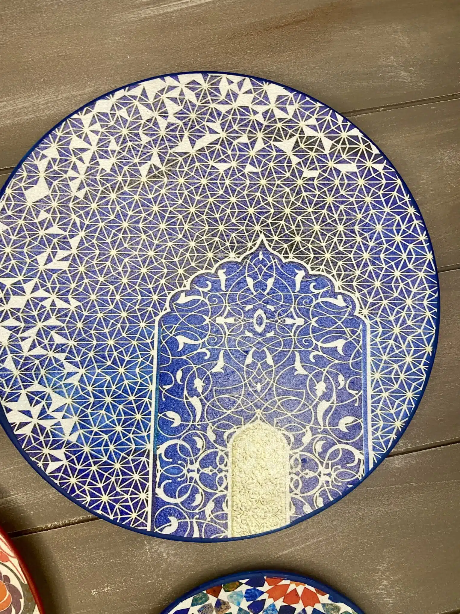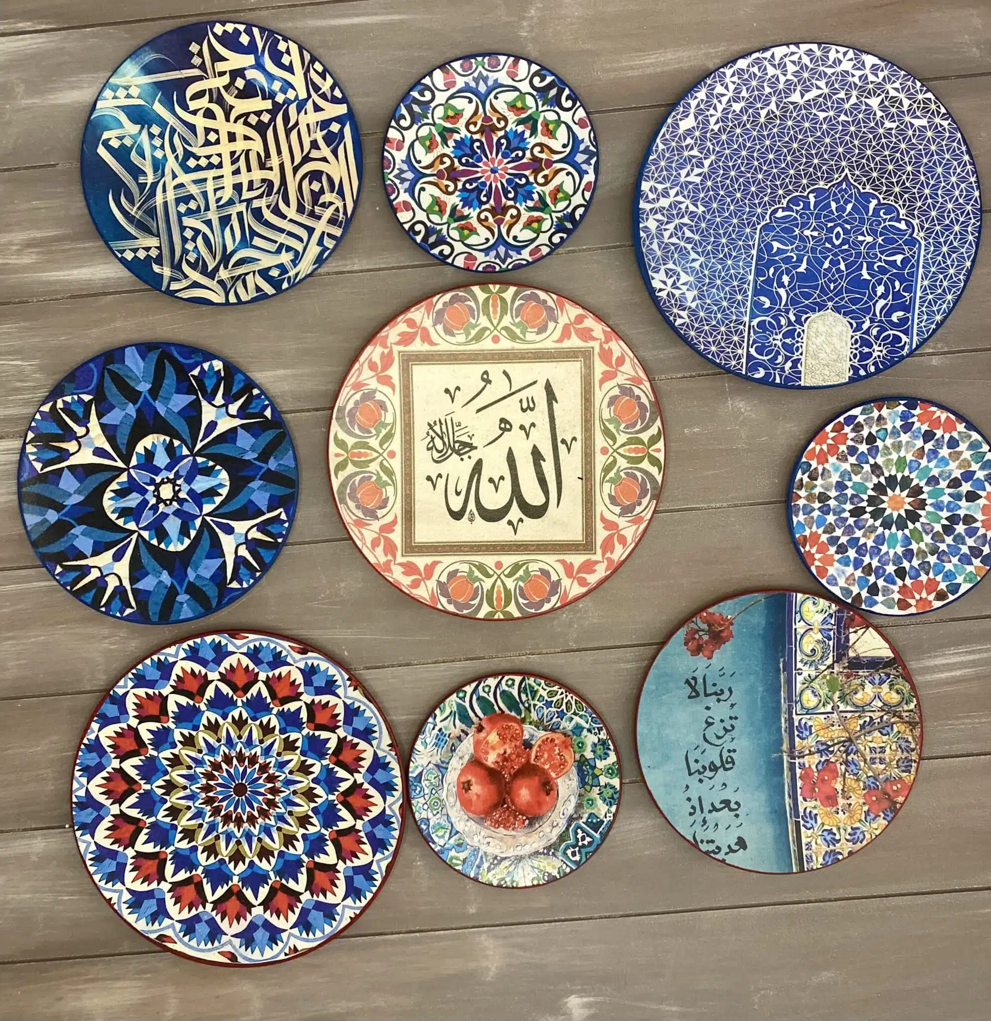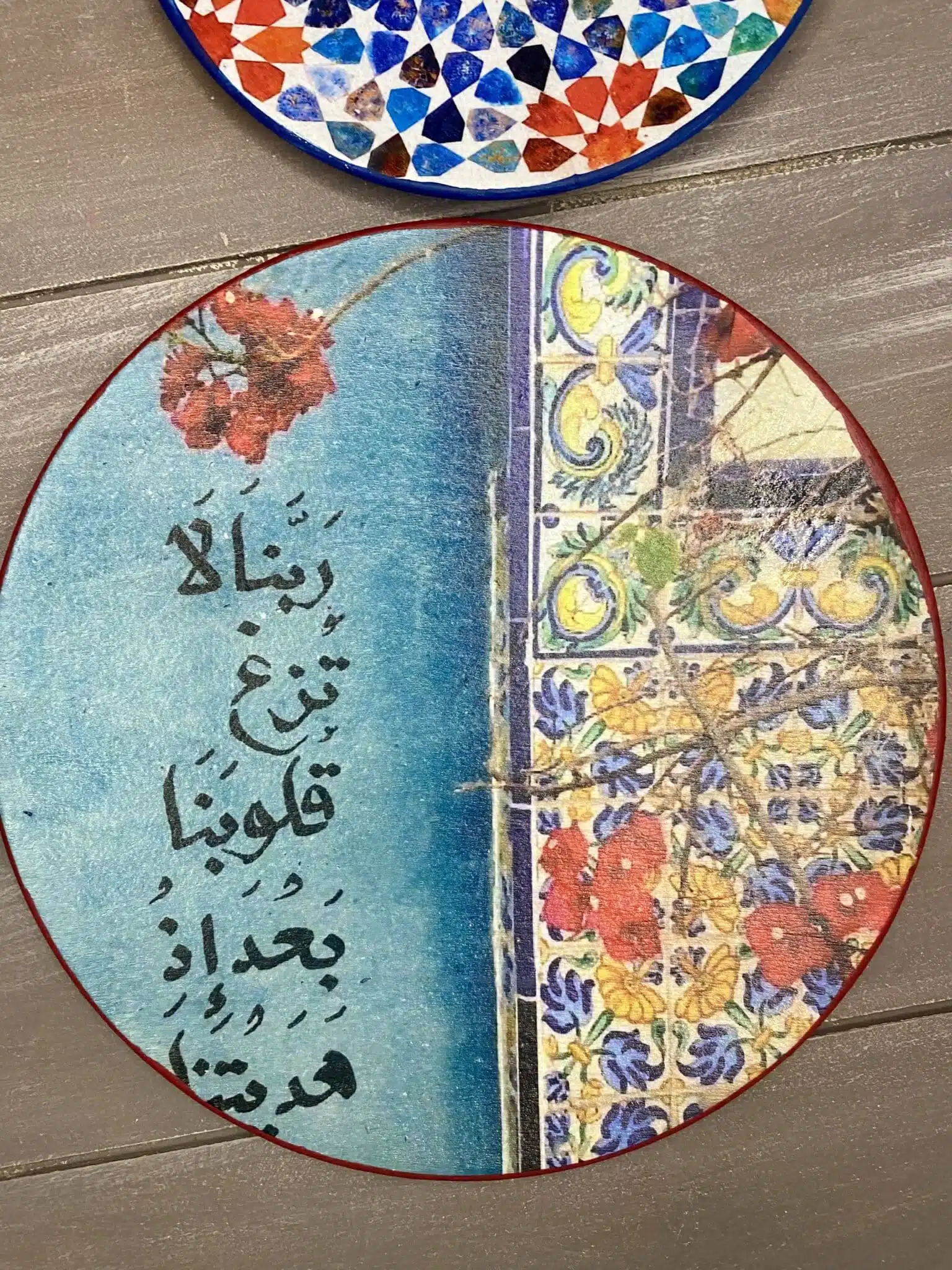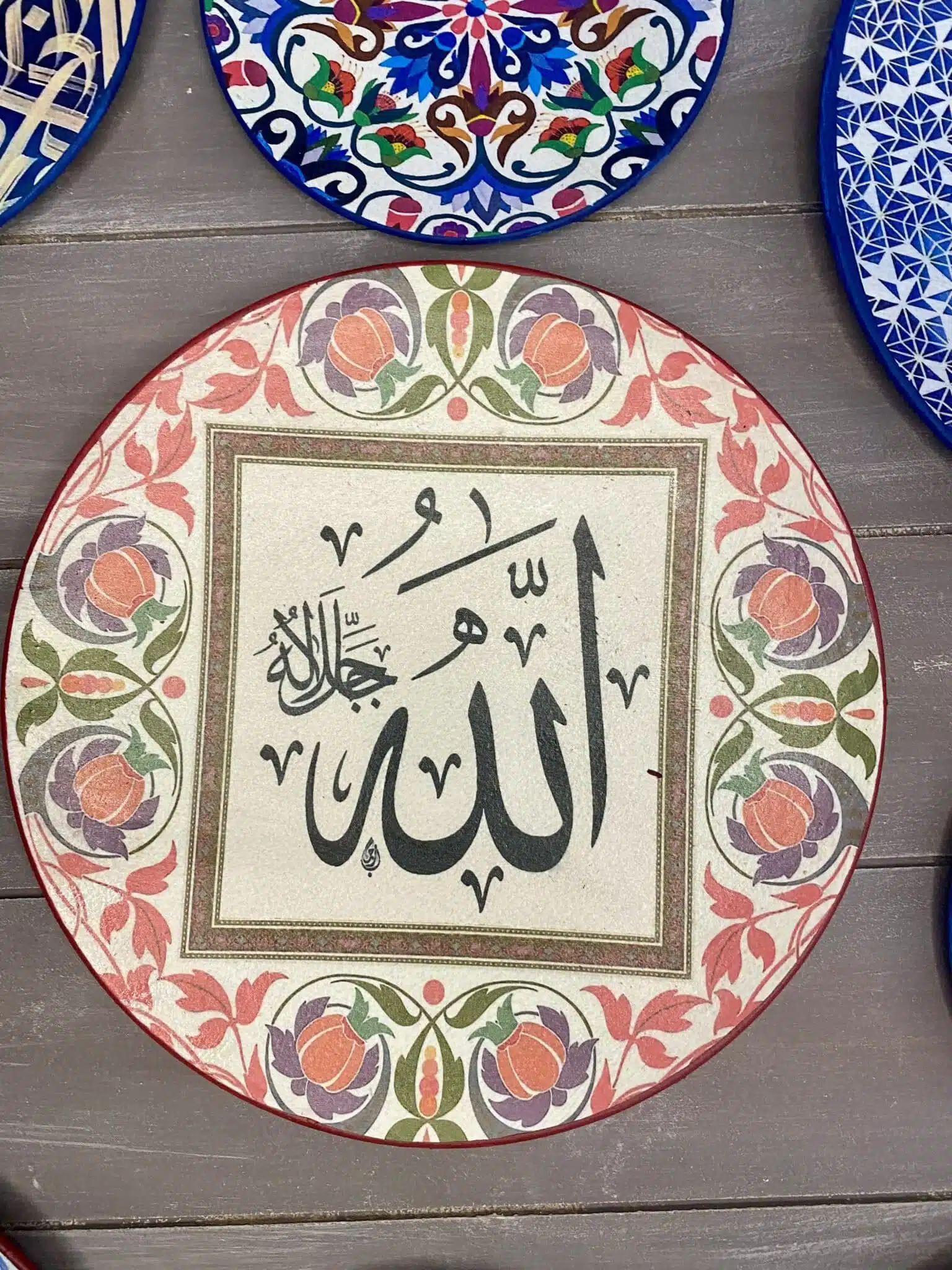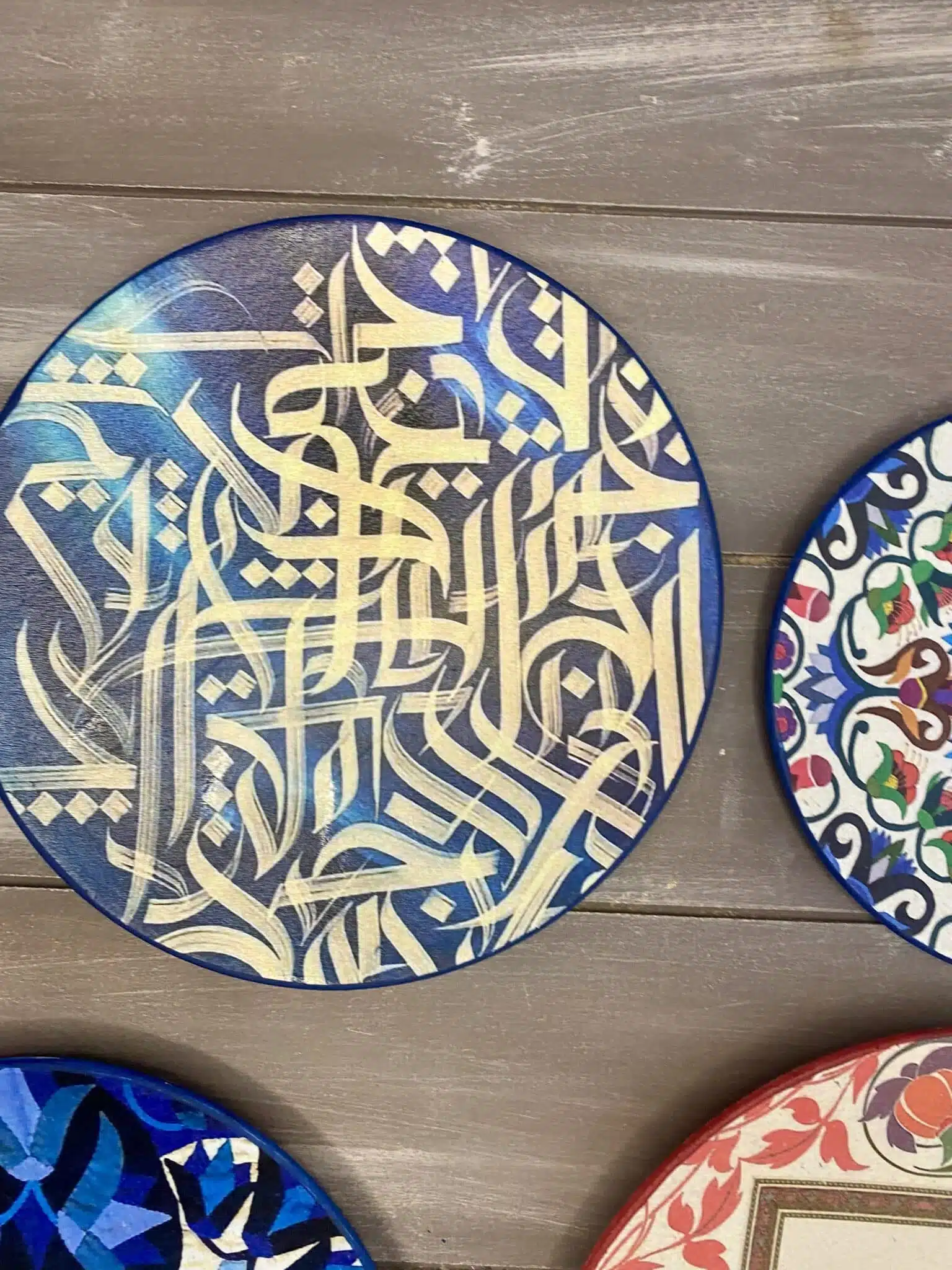 Decoupaged handmade wall plates in Islamic calligraphy theme