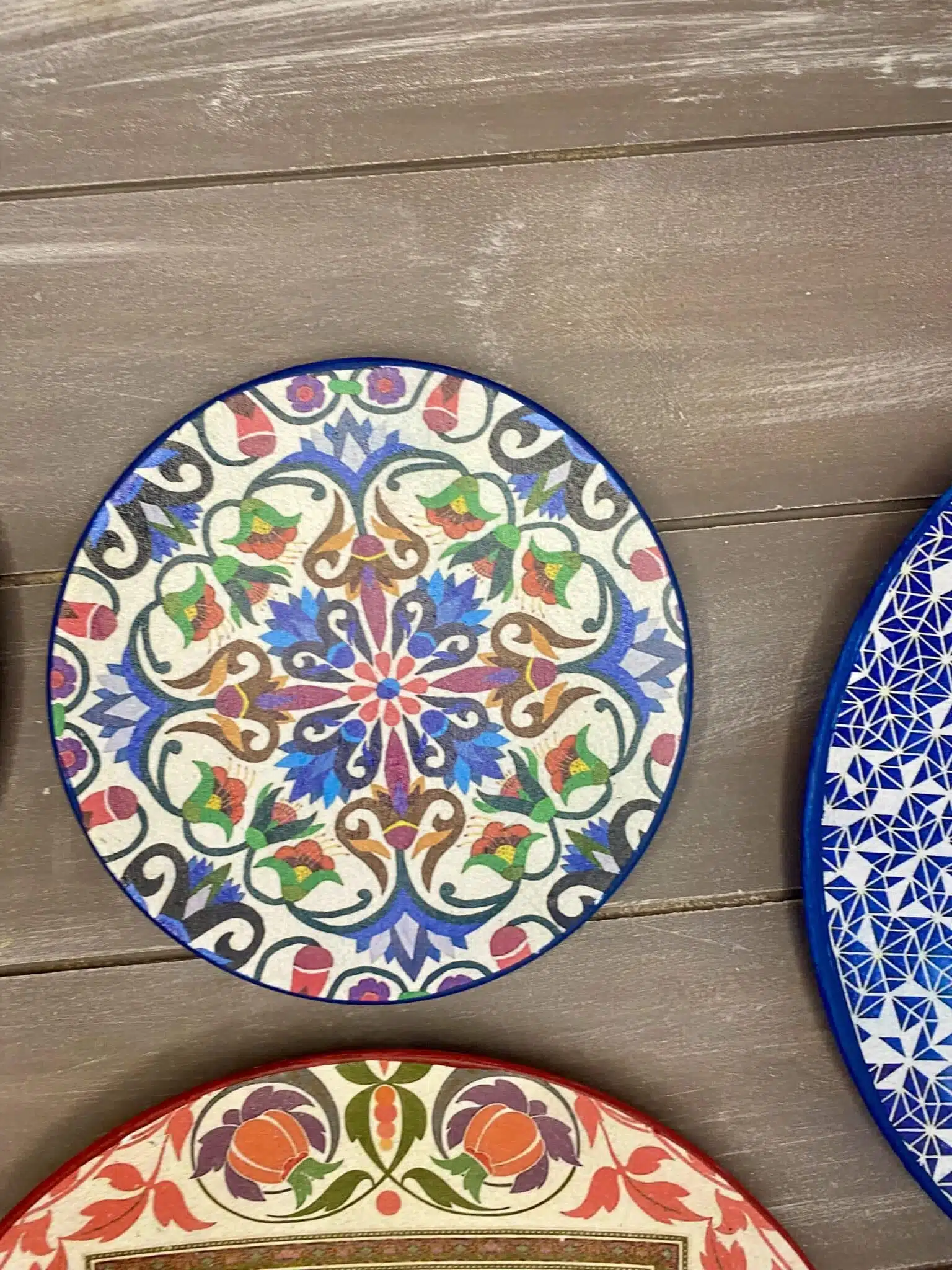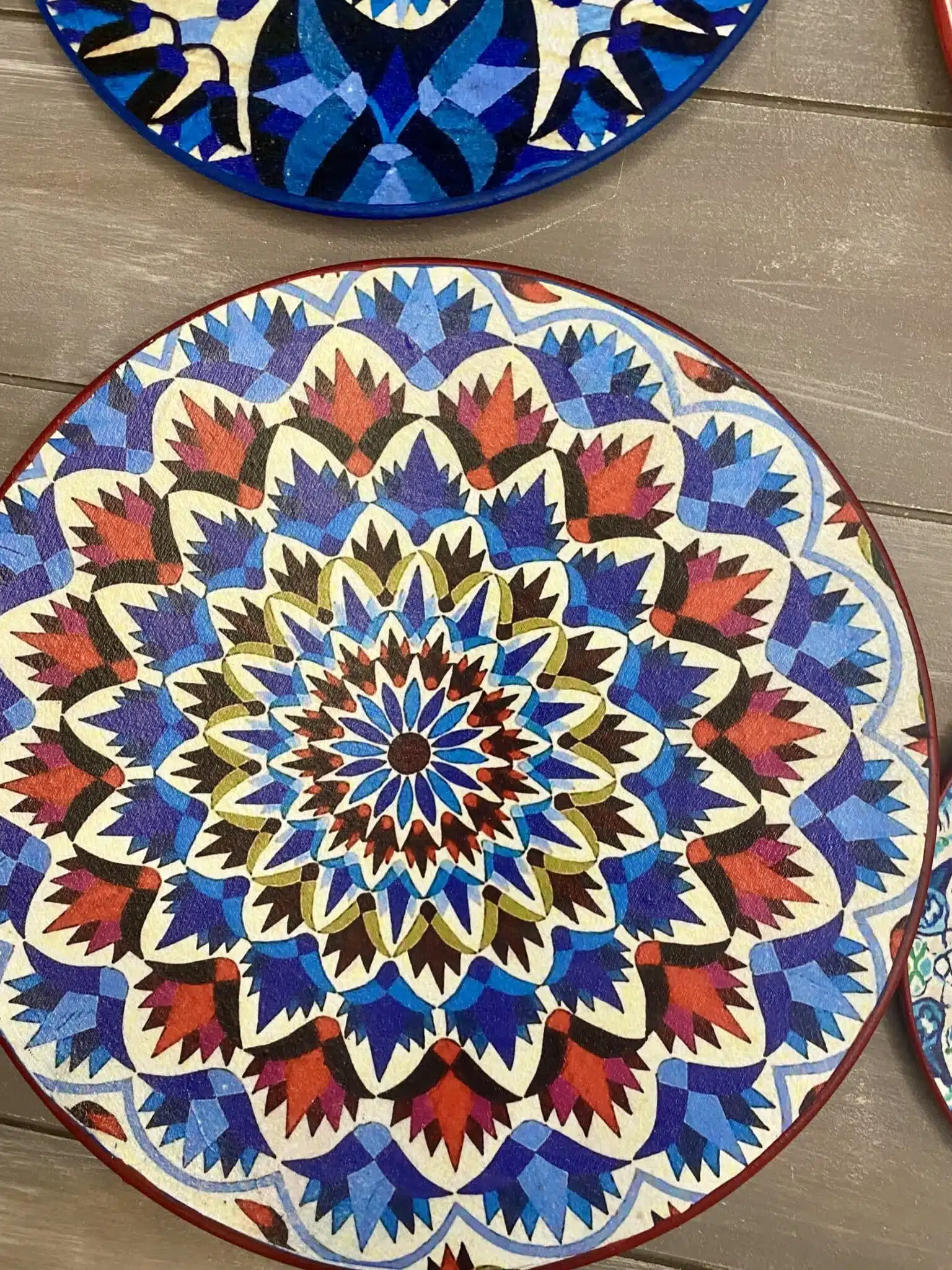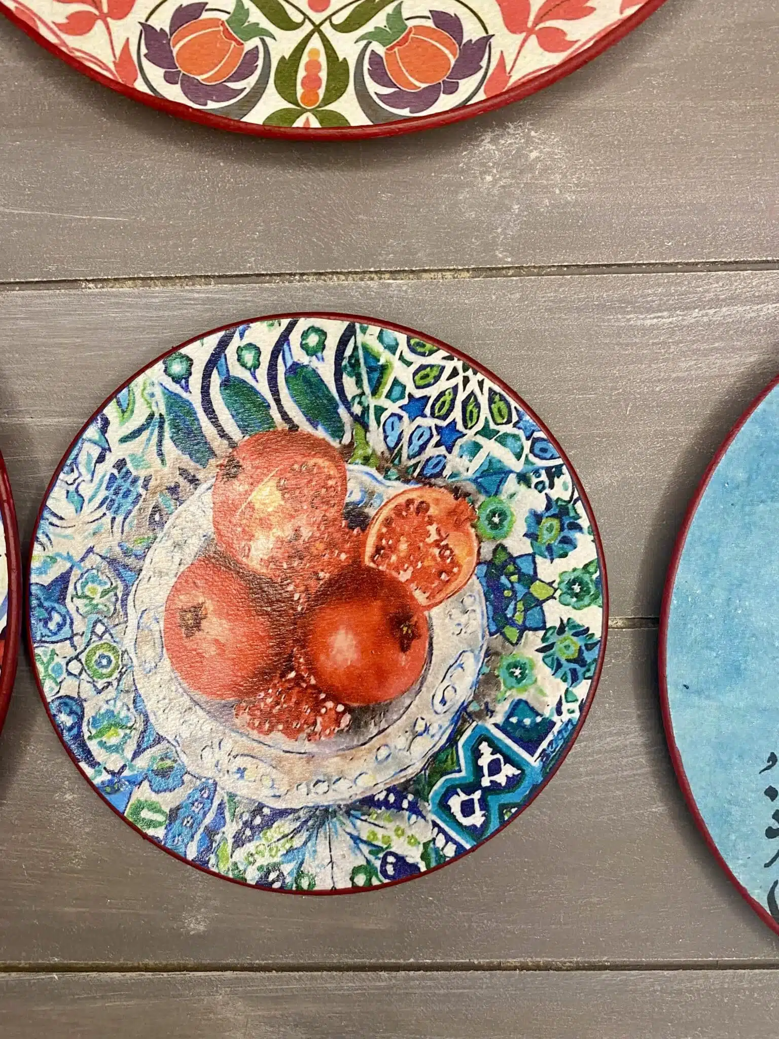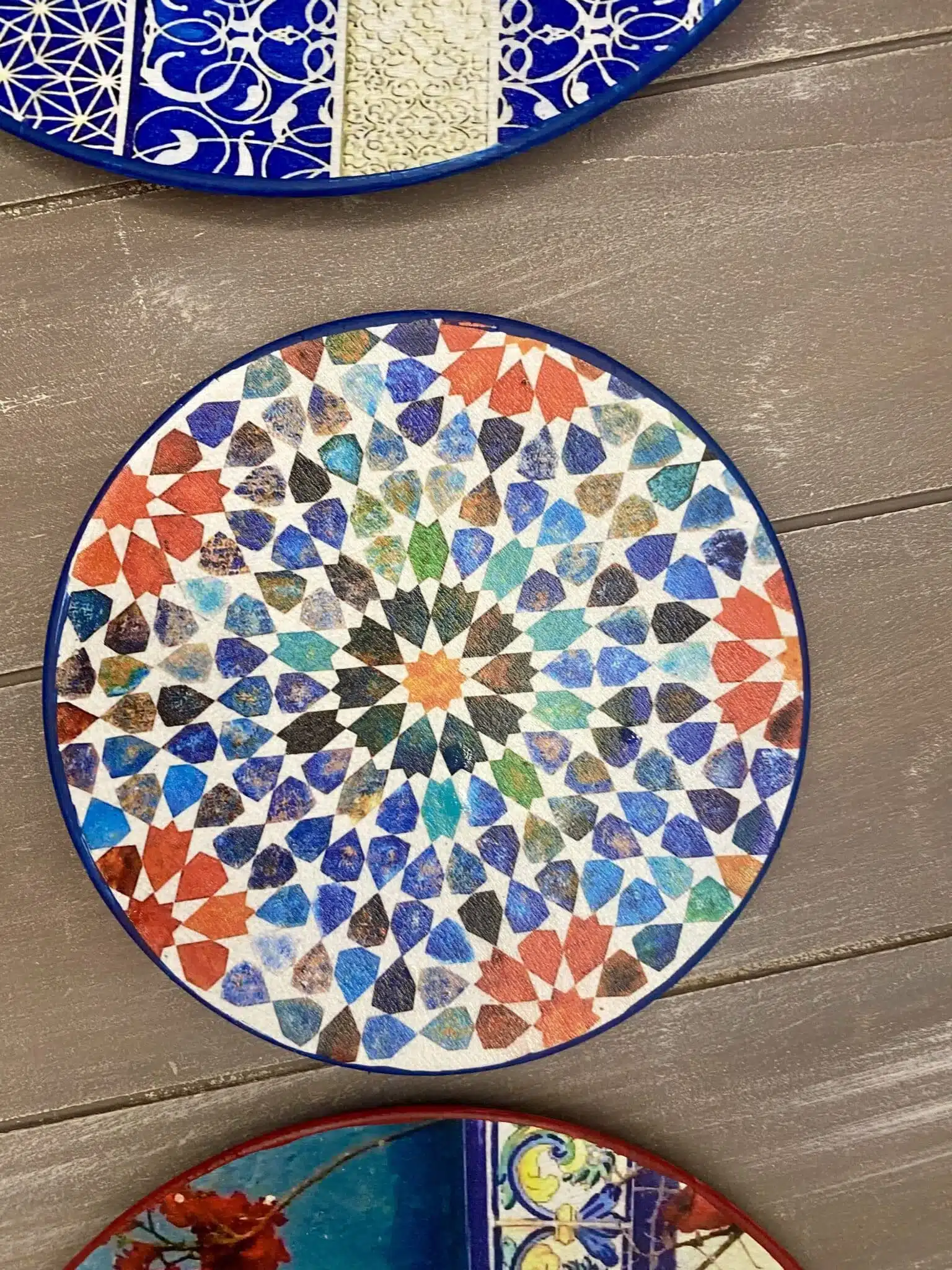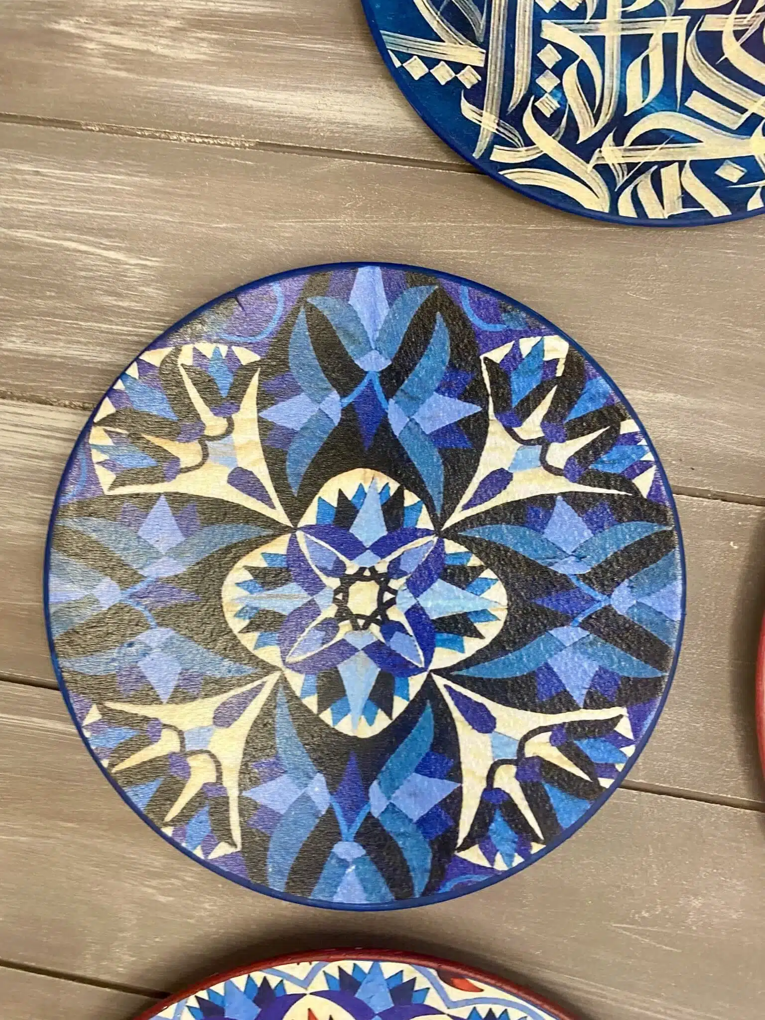 Decoupaged handmade wall plates in Islamic calligraphy theme