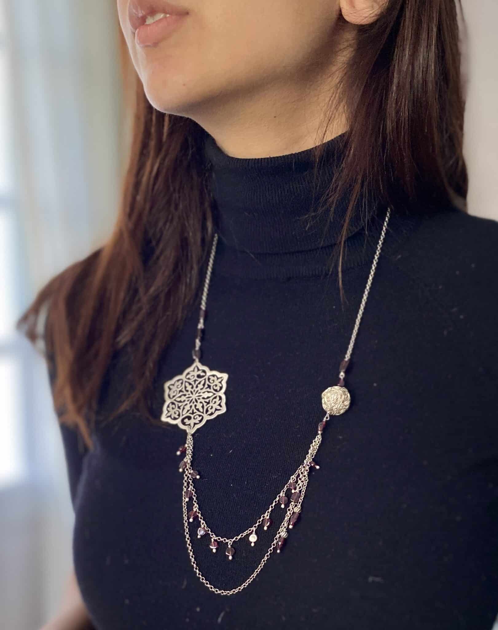 Sterling silver 925 necklace with garnet stones
