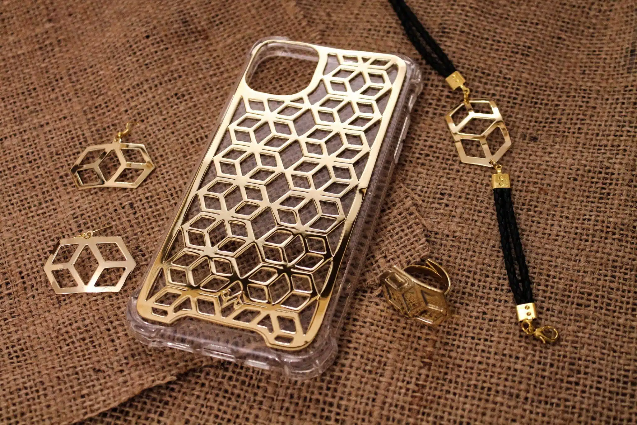 Islamic Pattern 03 Set (Mobile Cover, Bracelet, Ring and Earings) handmade with copper.