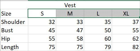 s, m, l, xl