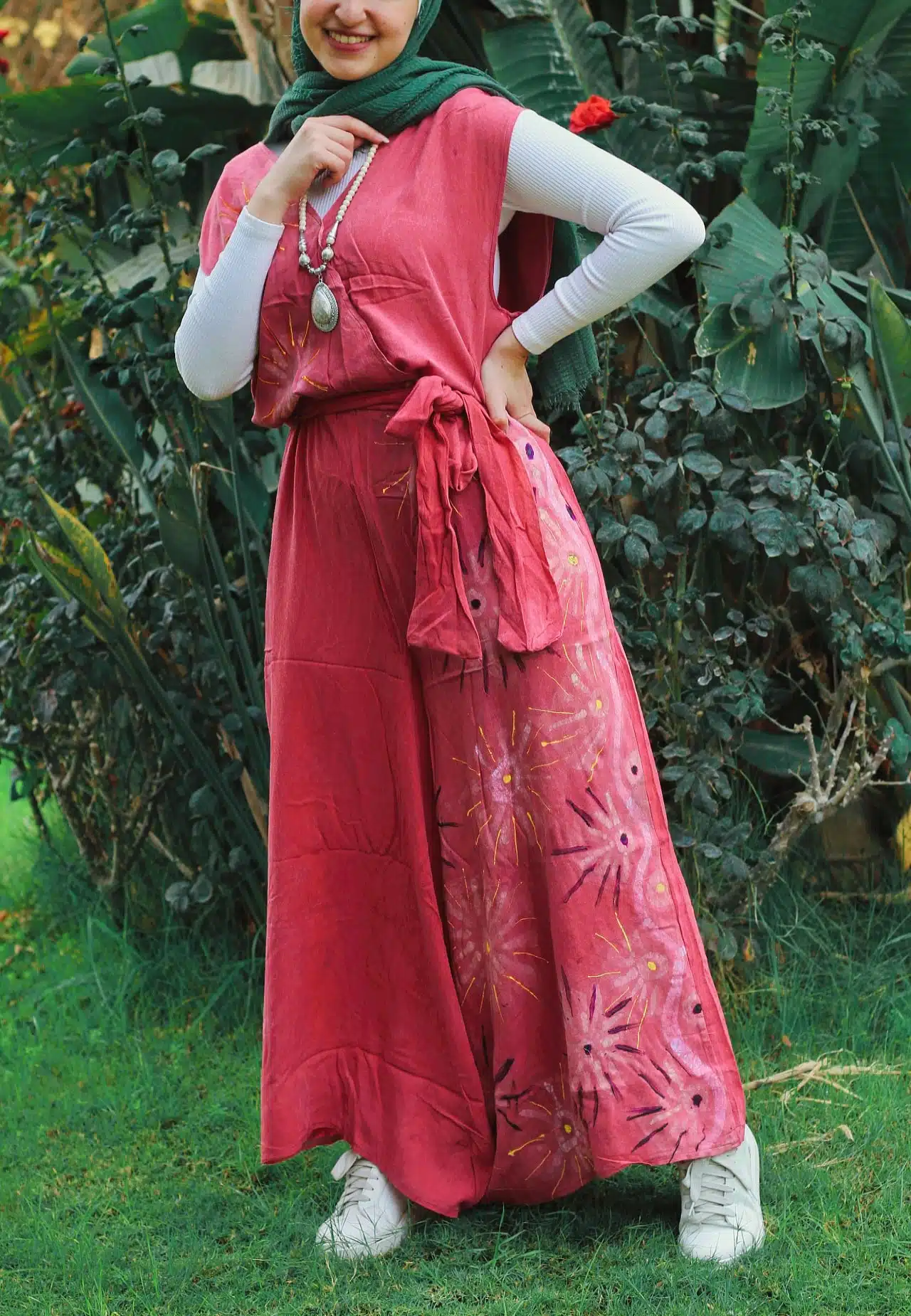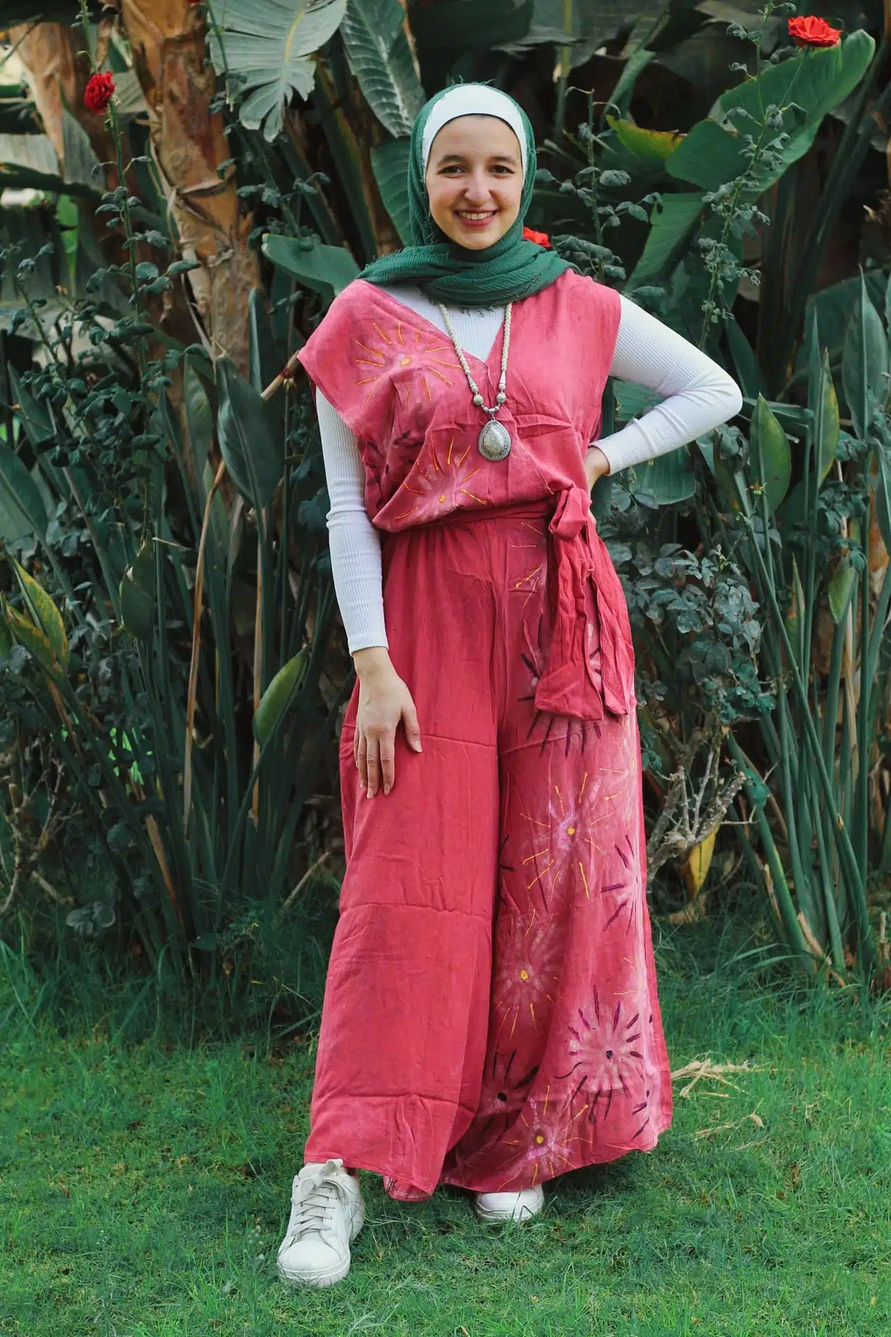 Orange handmade jumpsuit from white 100% cotton fabric size to 80 kg.