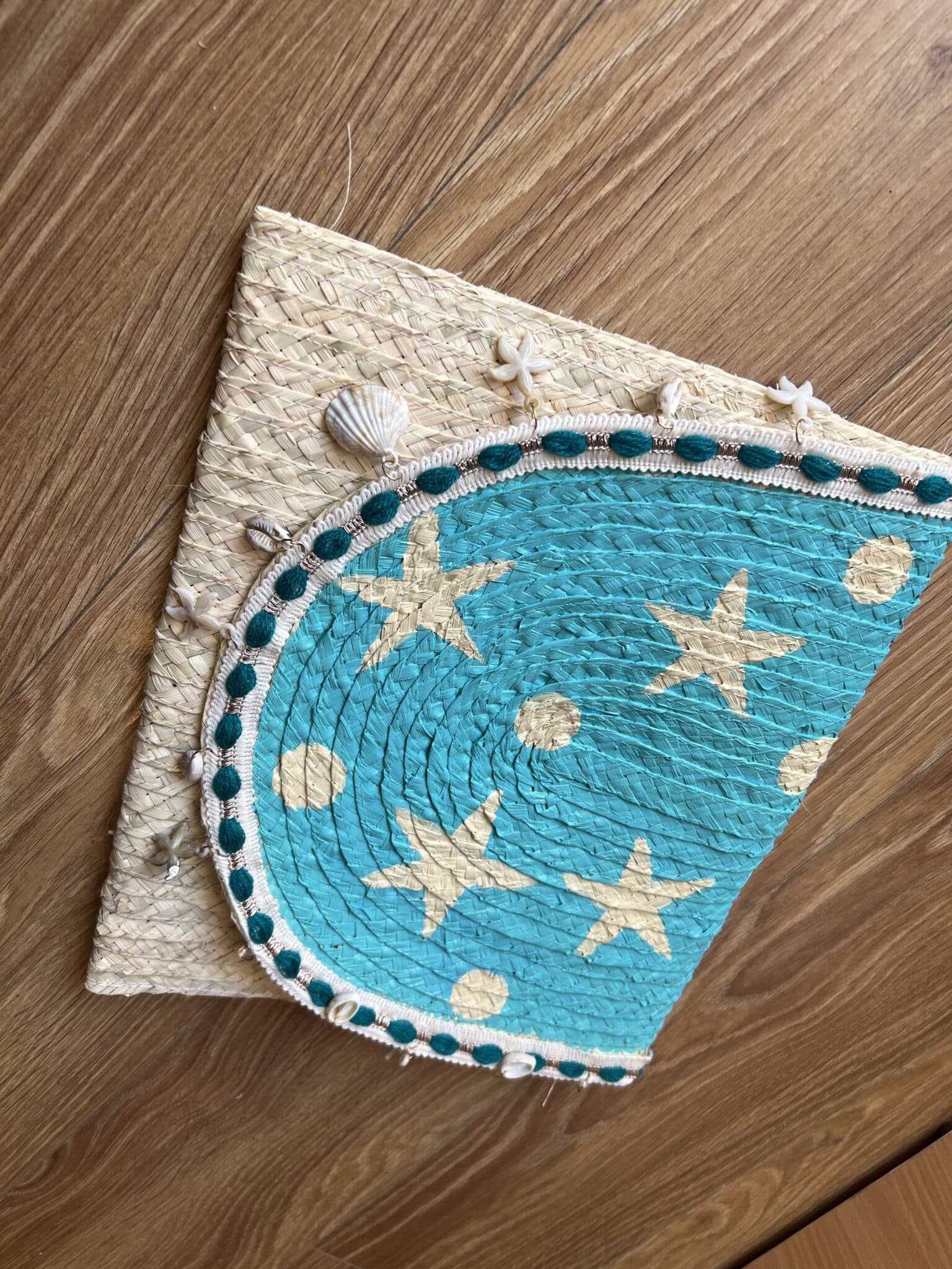 These hand-painted clutches are made of natural straw and feature a vibrant combination of summer colors. With a size of 24 x32 cm medium size