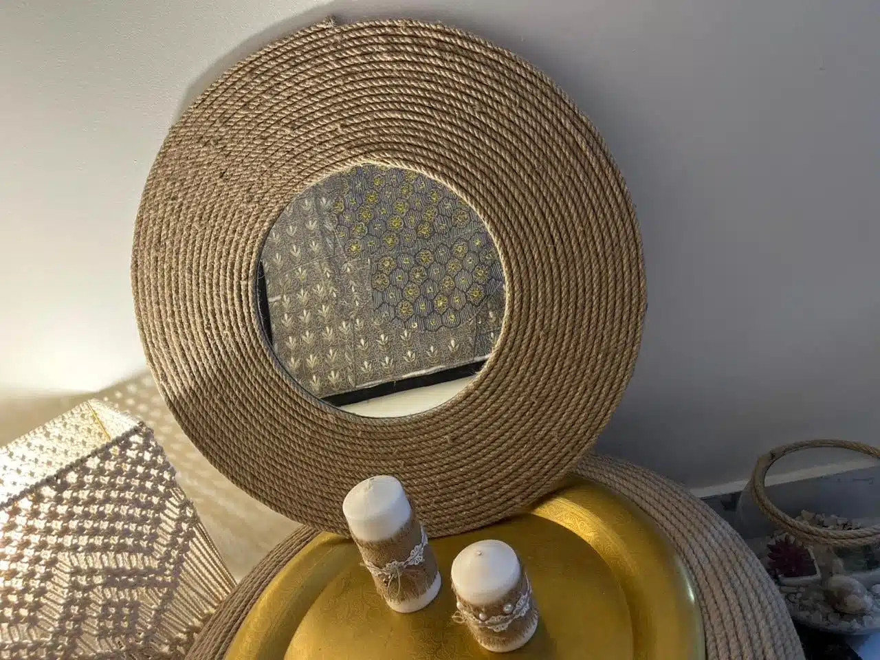 Mirror diameter 30cm, frame made by jute rope outer, diameter 60 cm