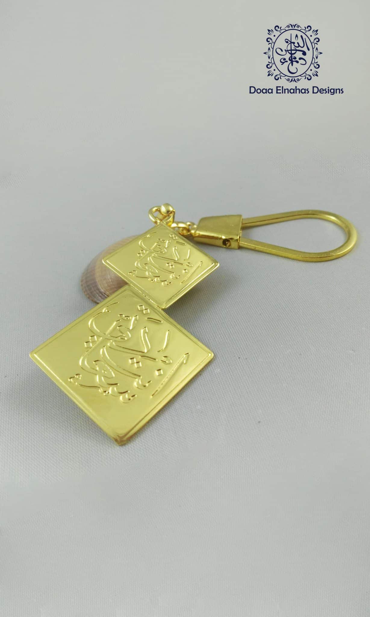 Gold-plated brass keychain with Arabic calligraphy engravings “انت سعادتي”