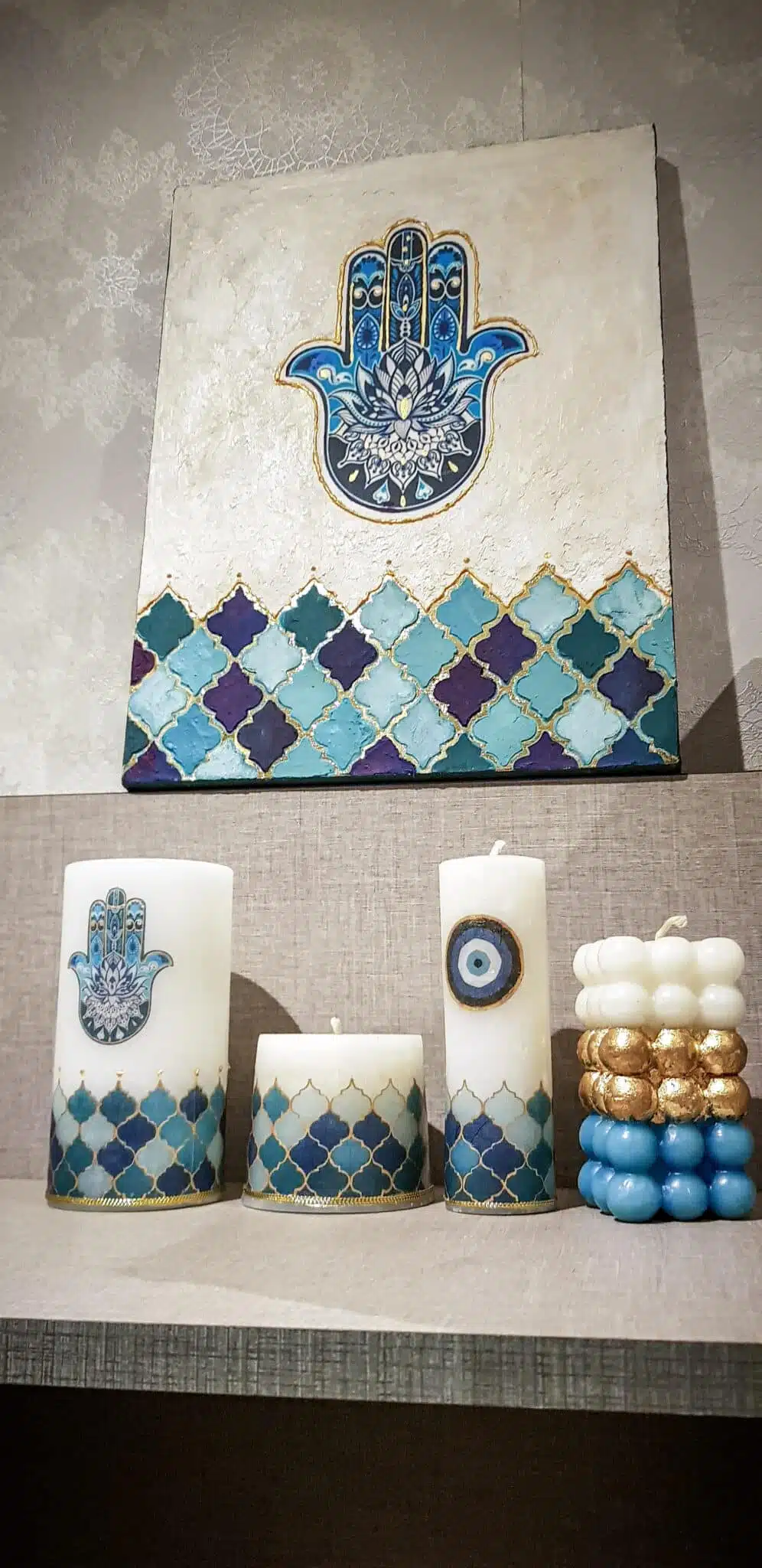 Set of 4 candles and acrylic painting size 30×40 cm