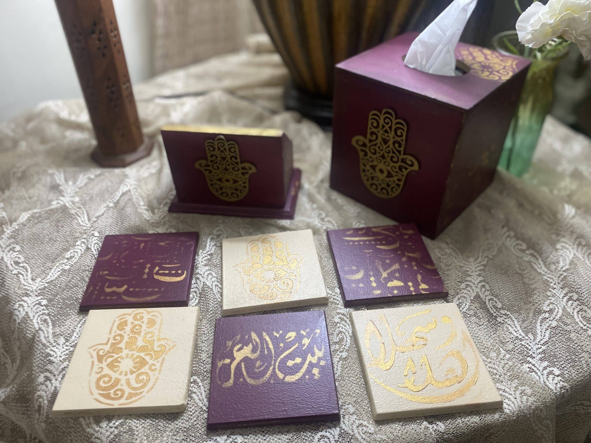 Tissue Box & Coasters with Wooden Kaf