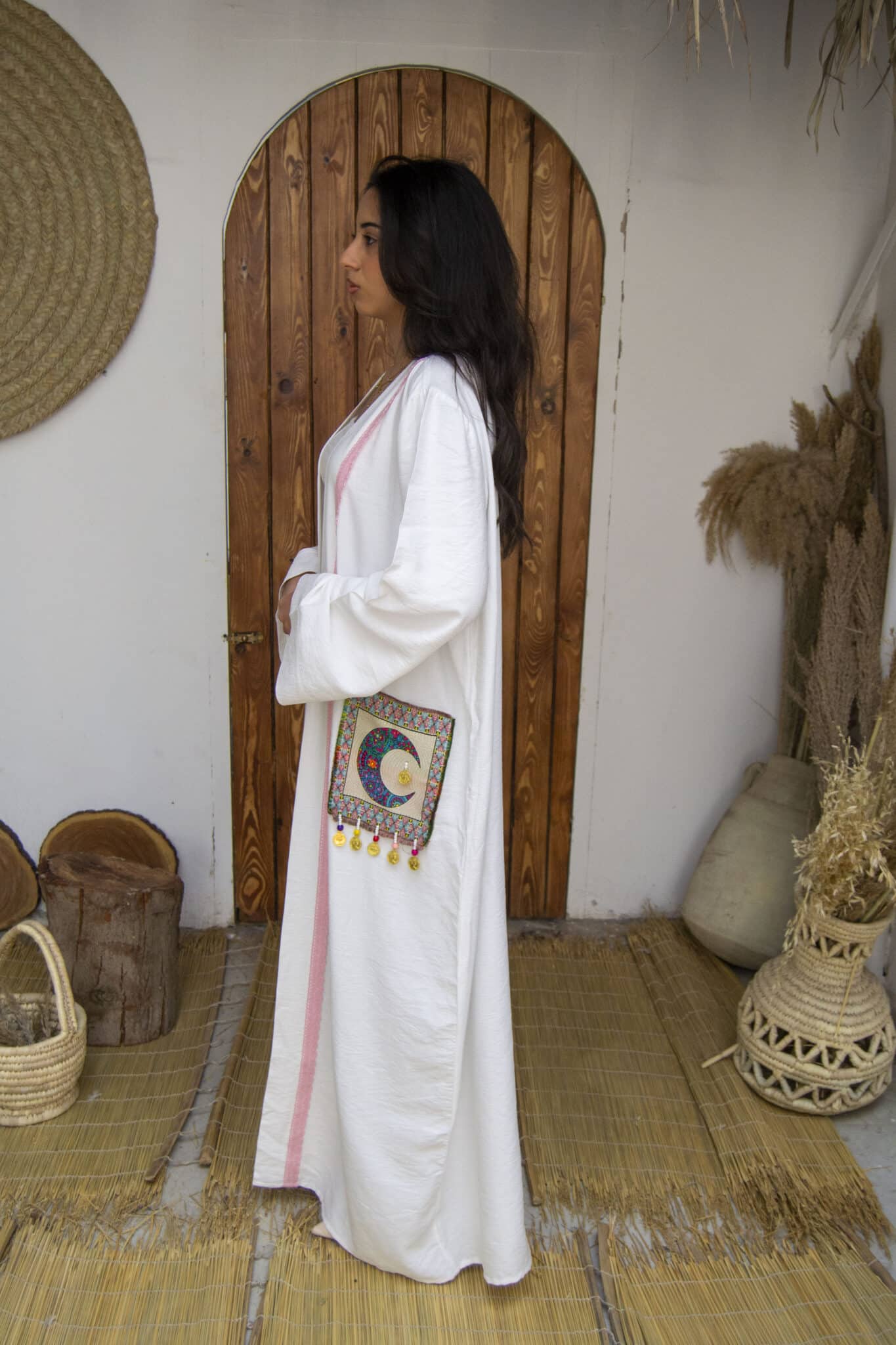 Linen kaftan with a bedouin embroidery
