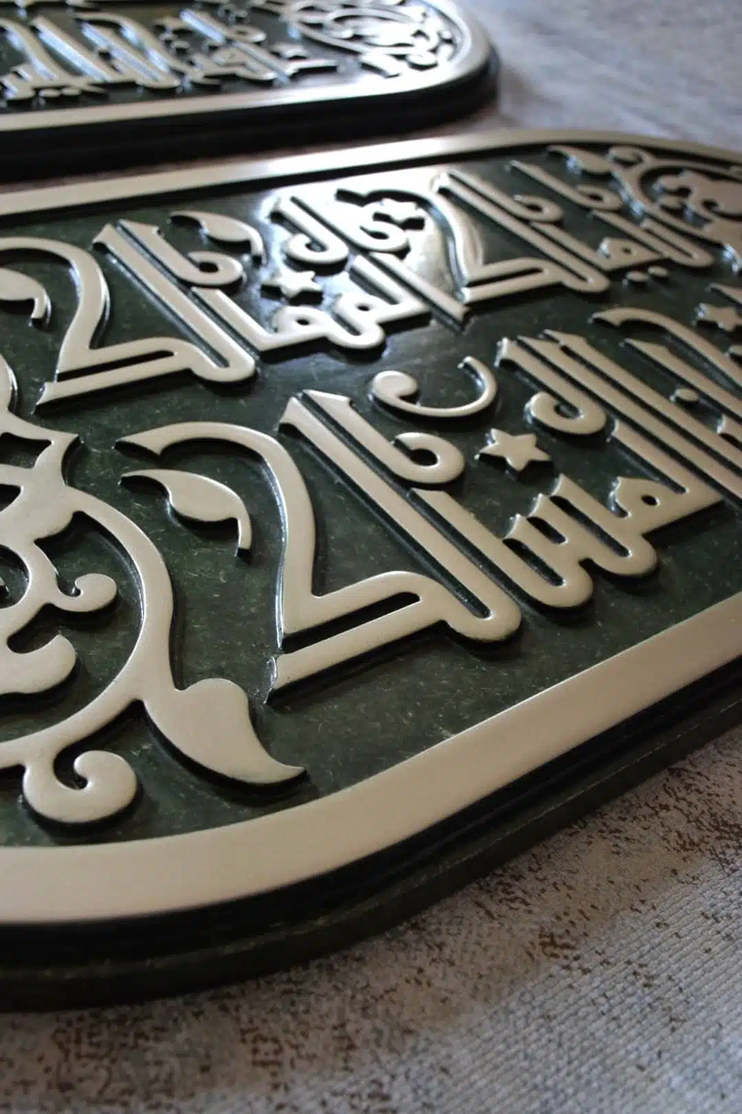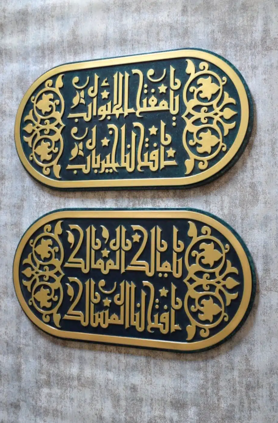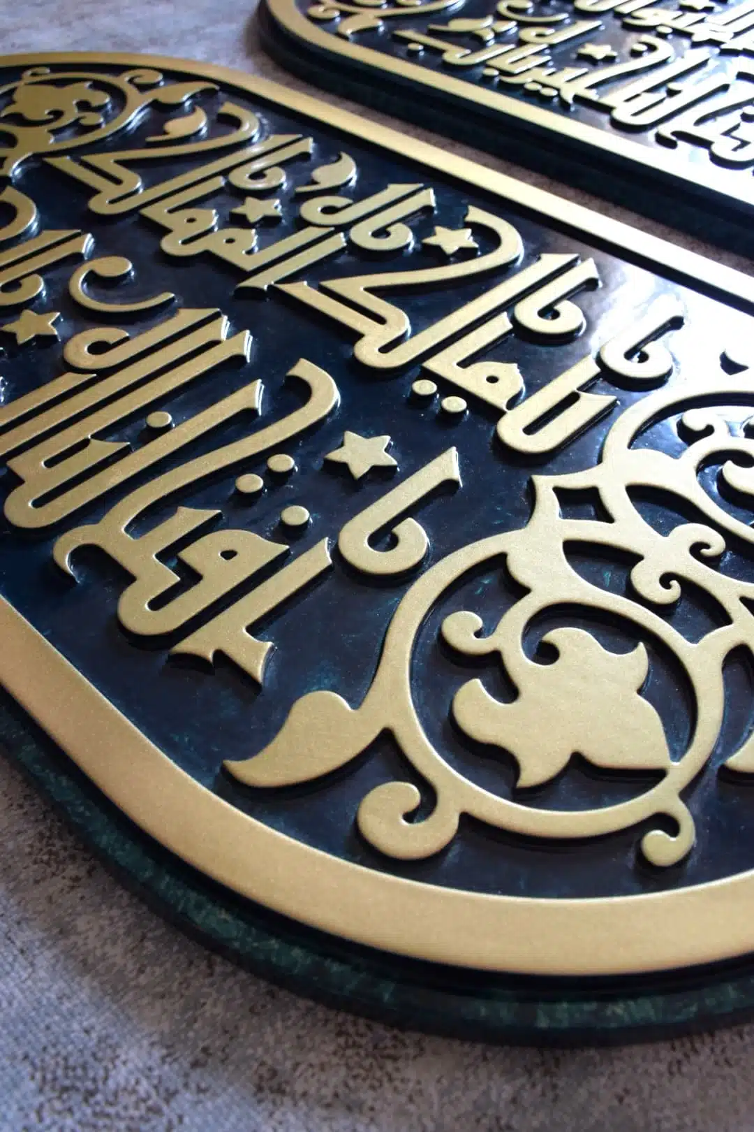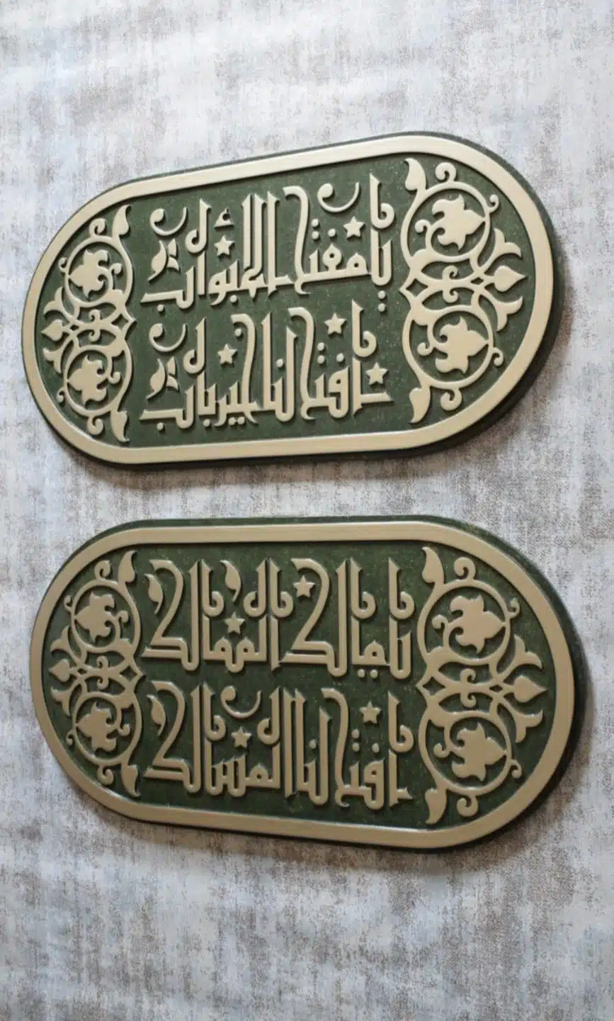 Wall unit made of engraved wood with Kufic calligraphy inspired from authentic places in Egypt.