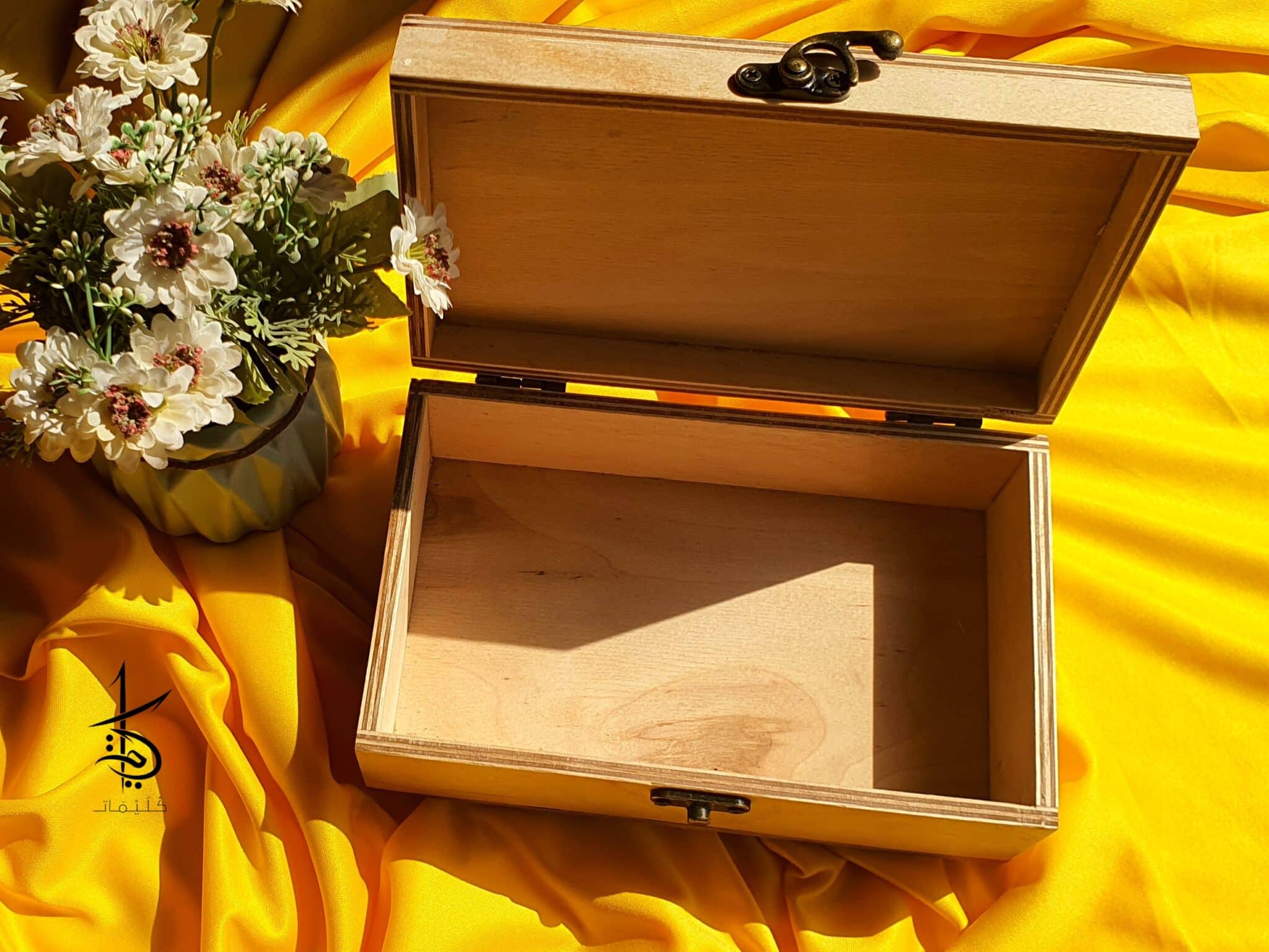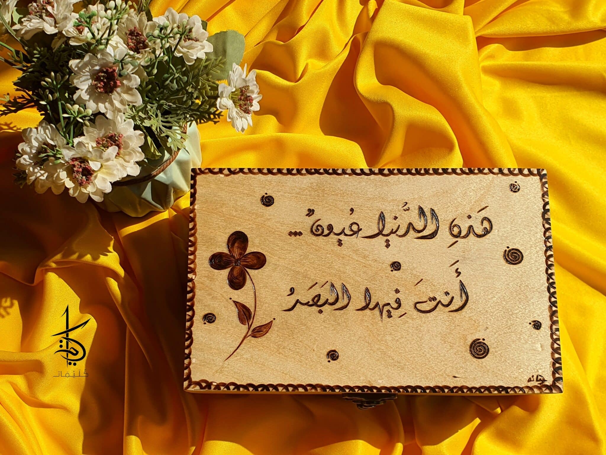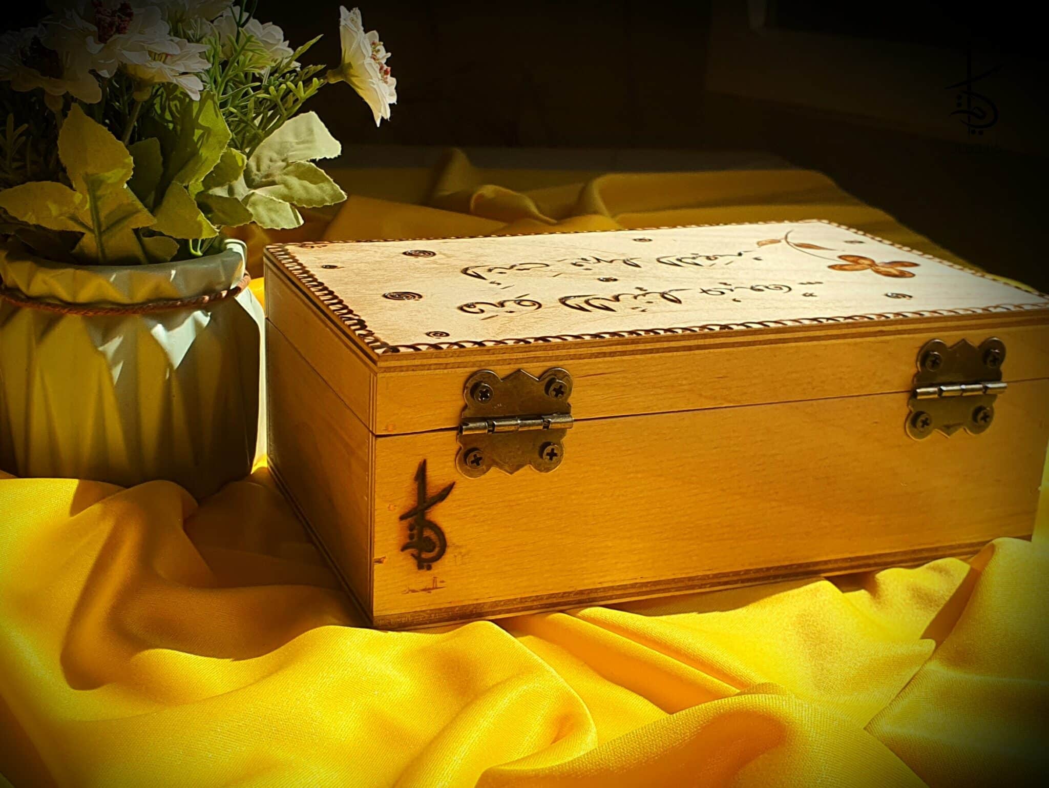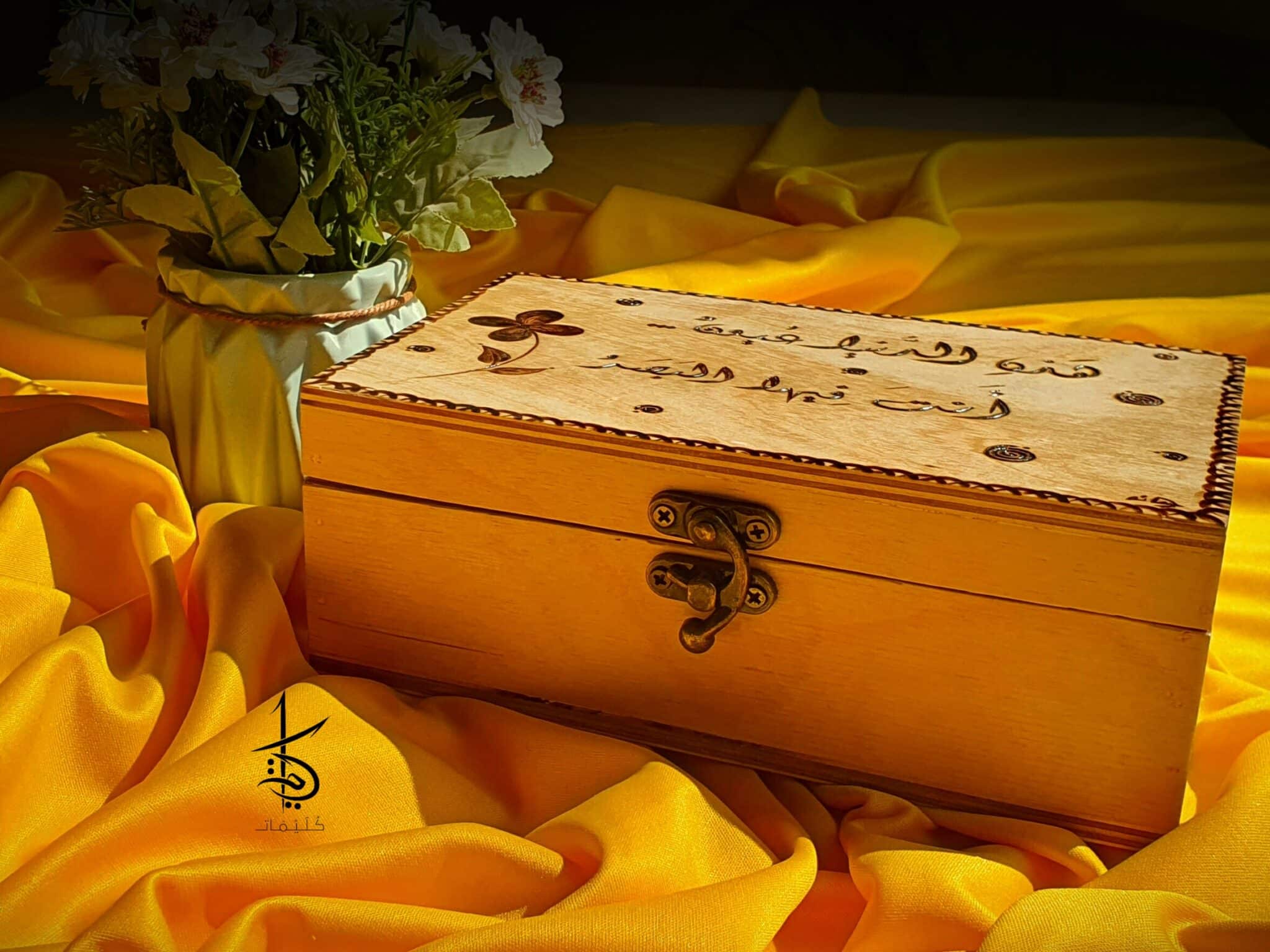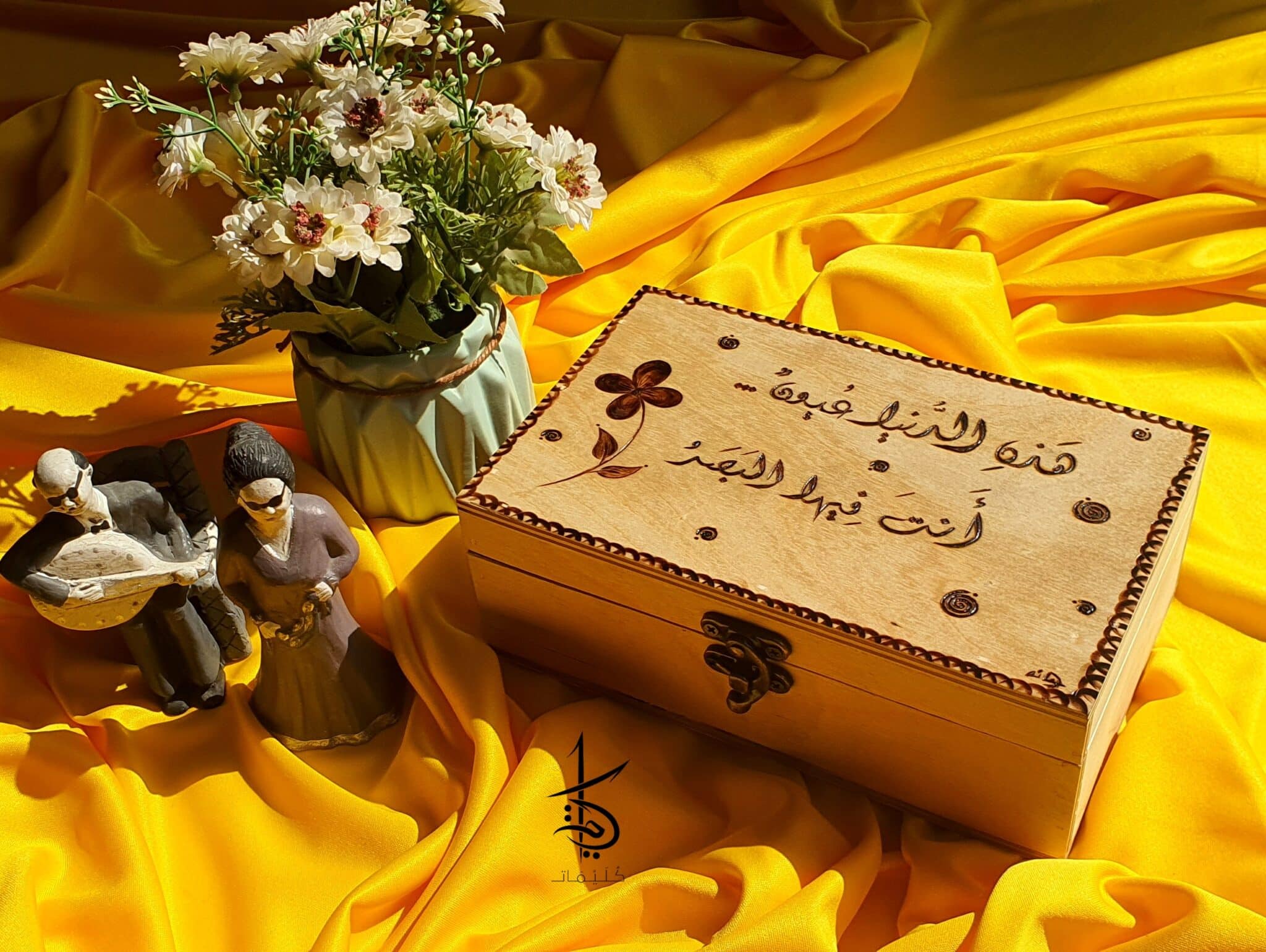 Wooden box with an old rustic lock and a hand-burned Um Kolthoum design for a special person: