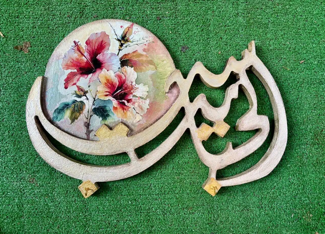 حامل للمفاتيح من الخشب بكلمه ست الحبايب