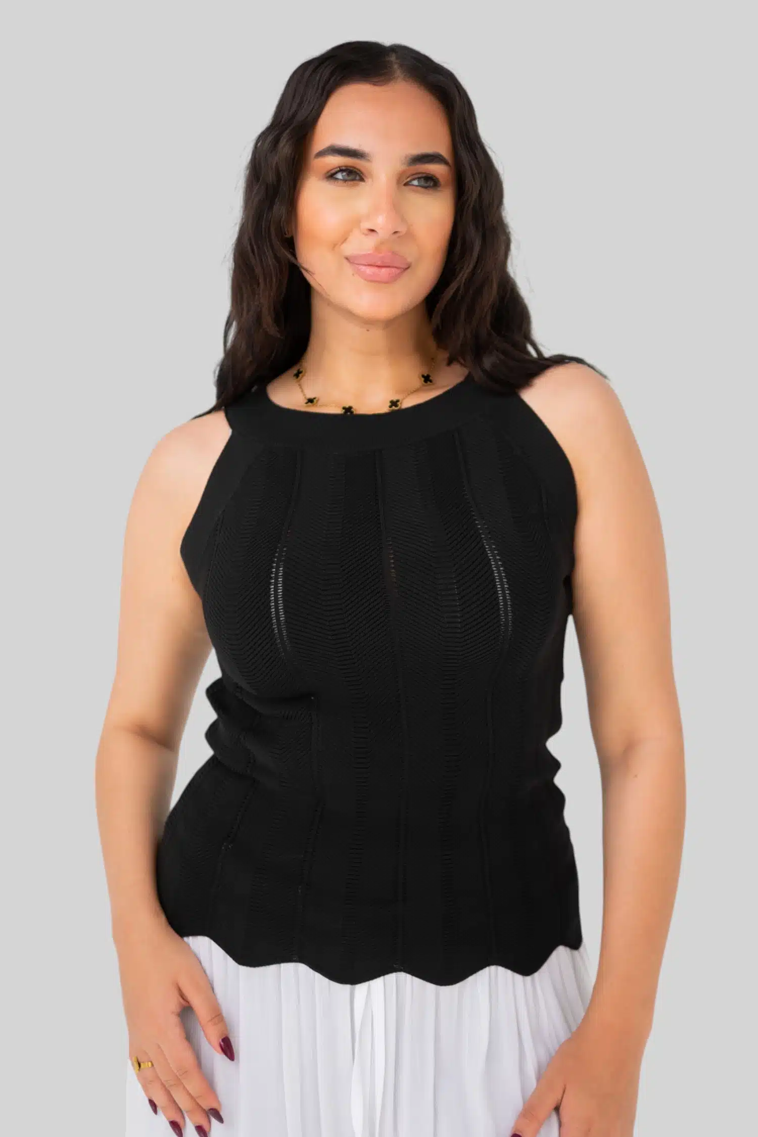 halter knit top black