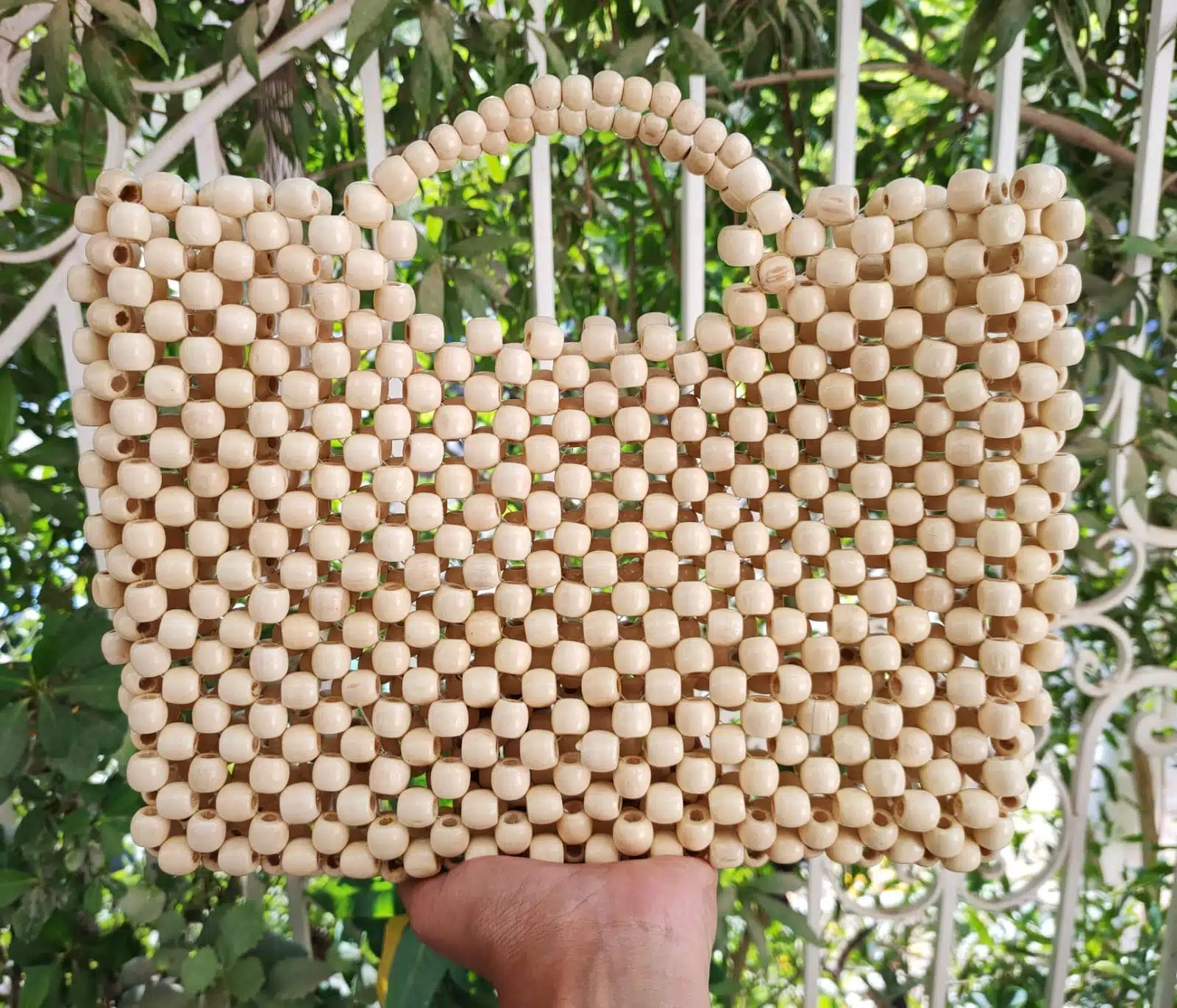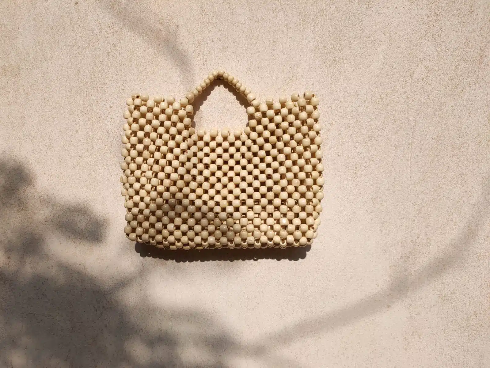 “كوري” شنطة من الخرز الخشبي بلون الاوف وايت ويد صغيرة