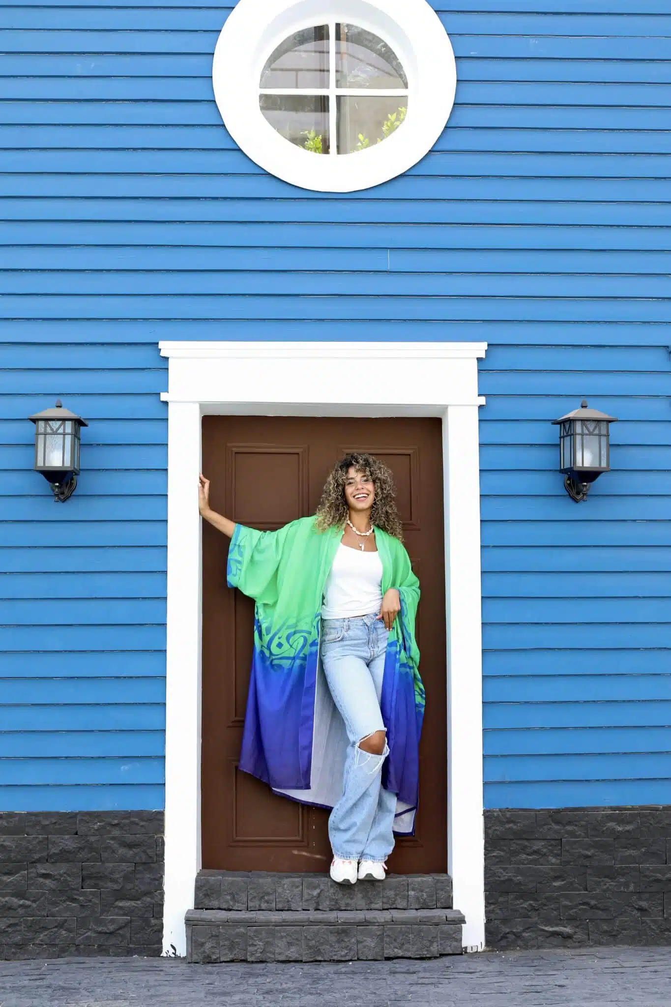كيمونو من الكتان ،تصميم مستوحى من التراث الكوفى