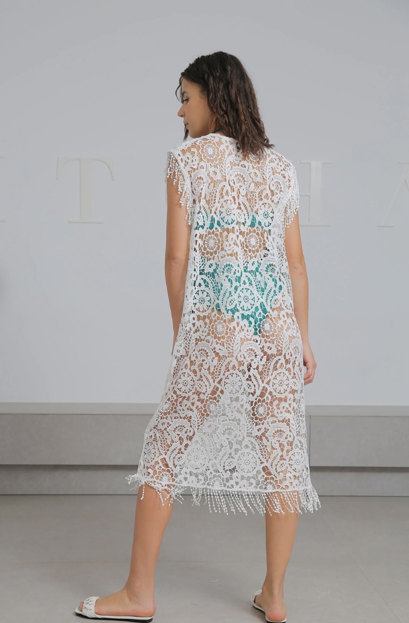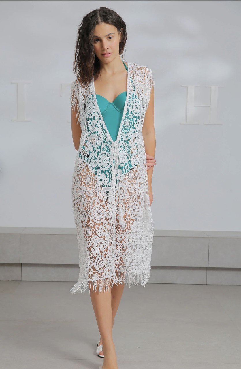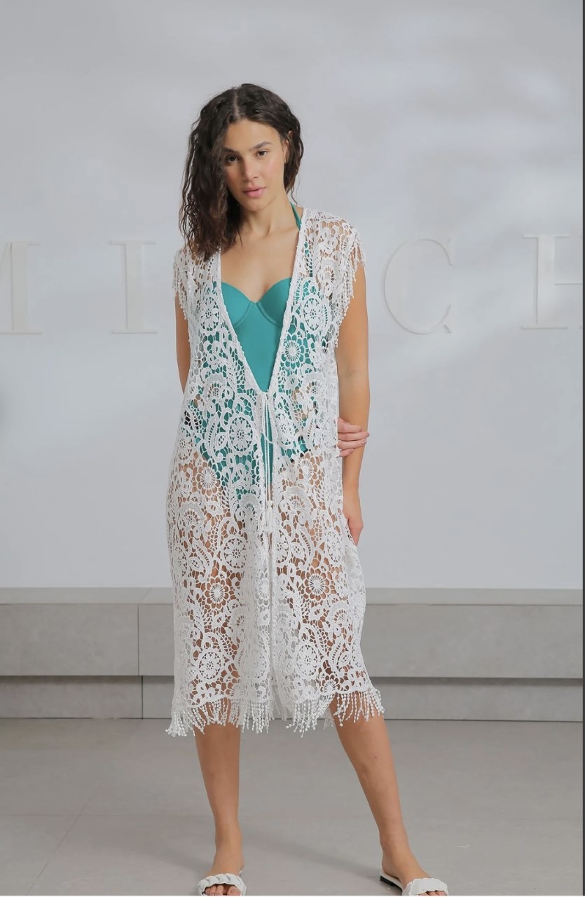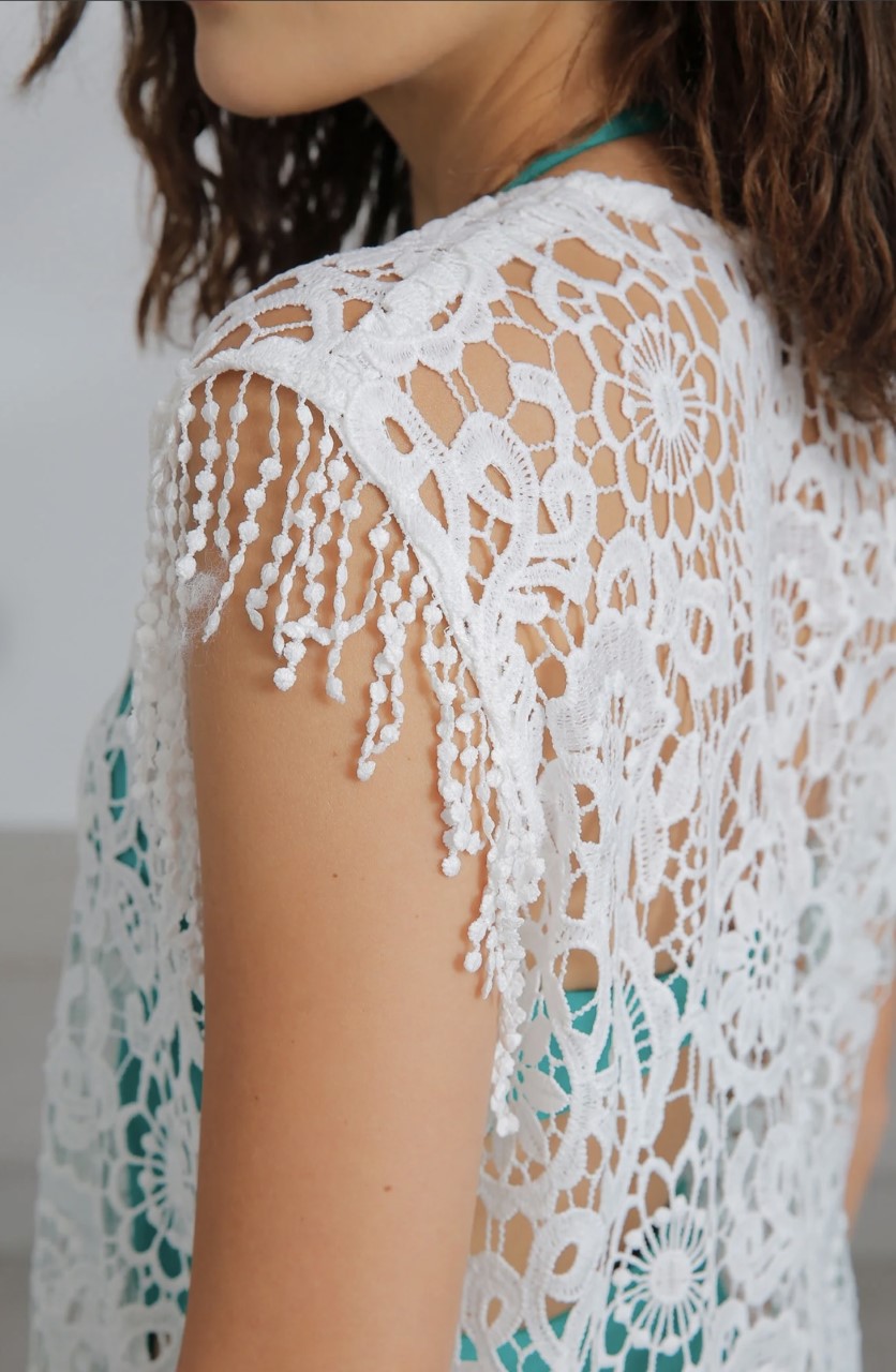 lace cardigan with front rope, can be used as a beach coverup or over shorts or pants