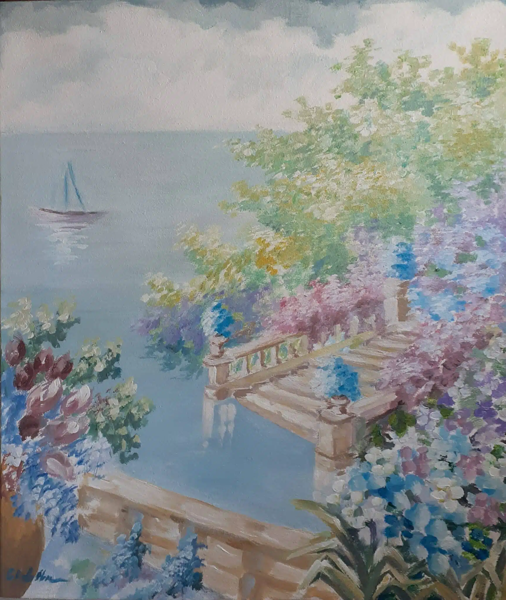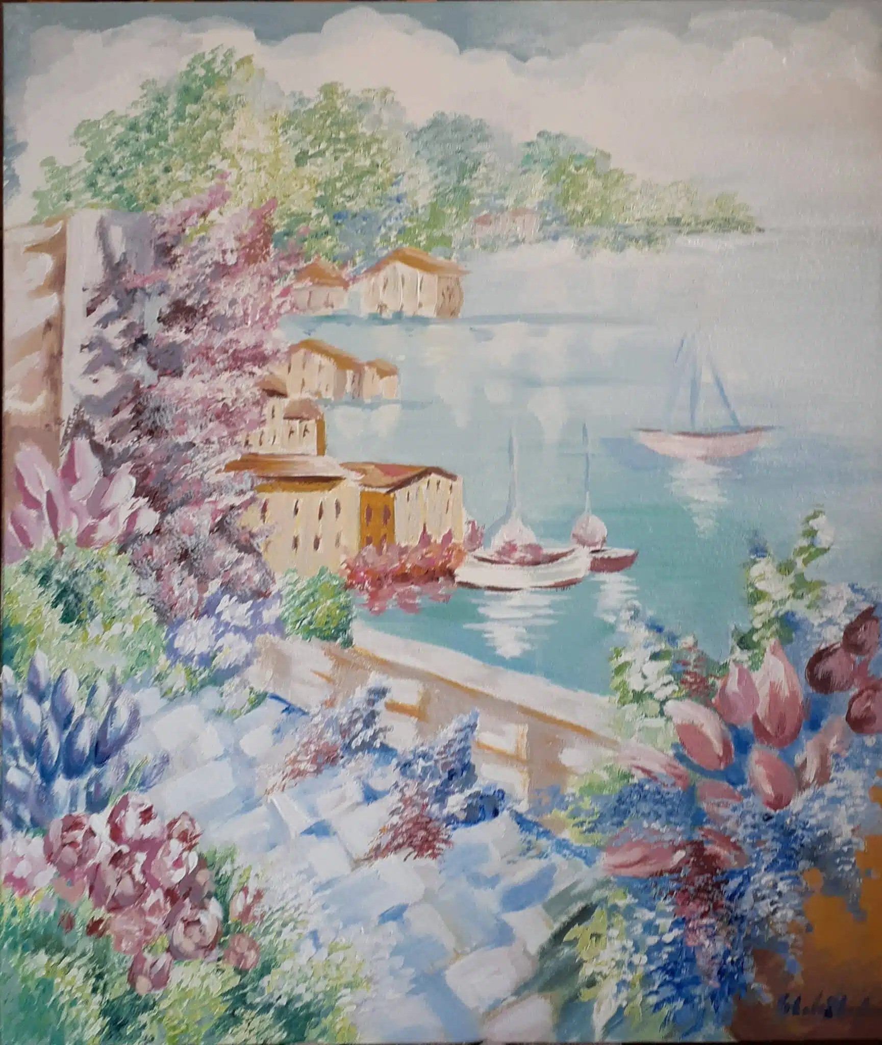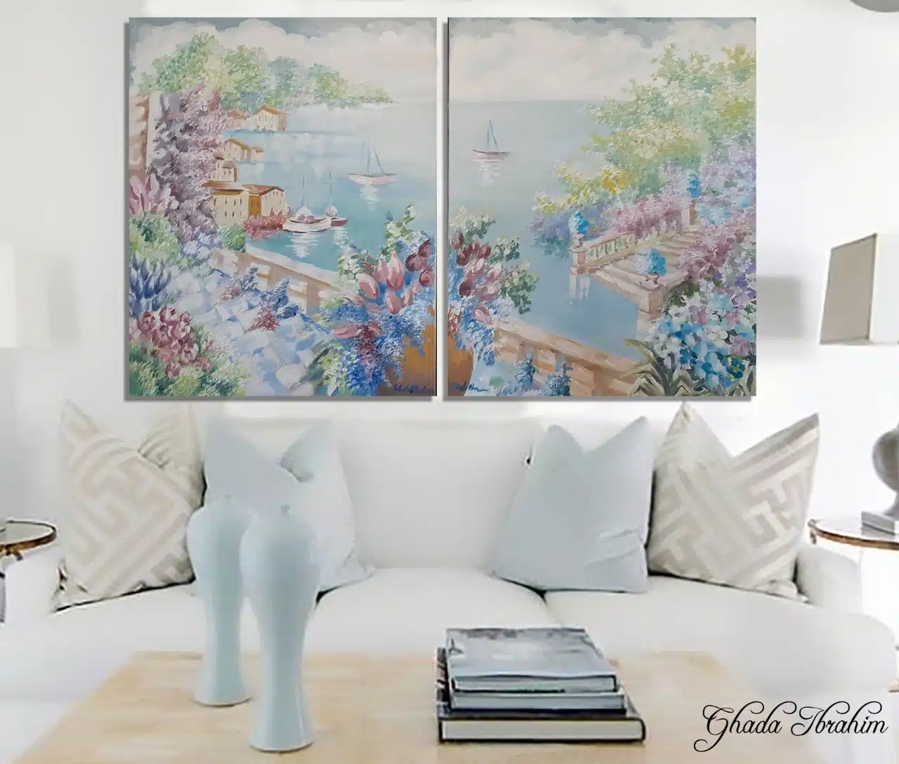 ٩Two original acrylic paintings represent beautiful calm landscape .