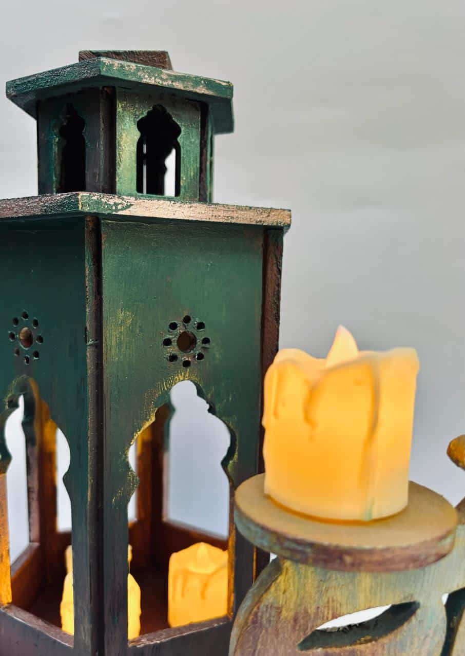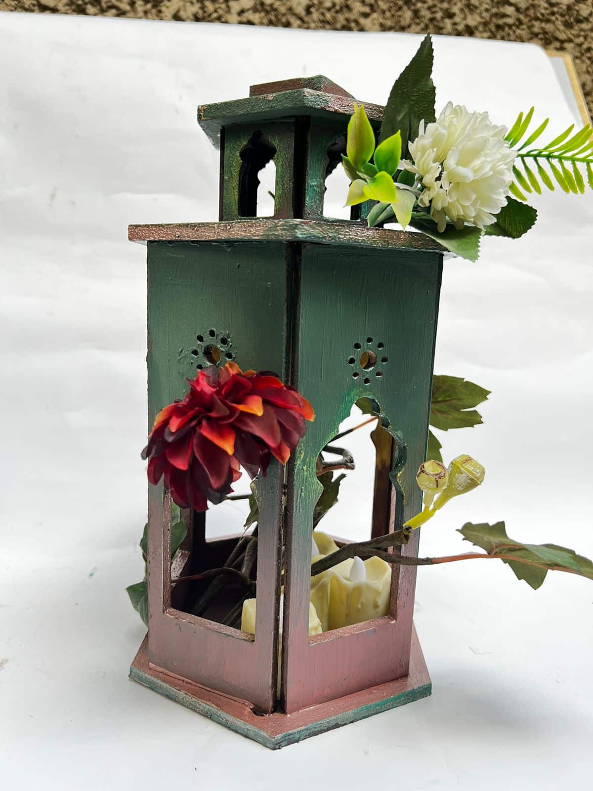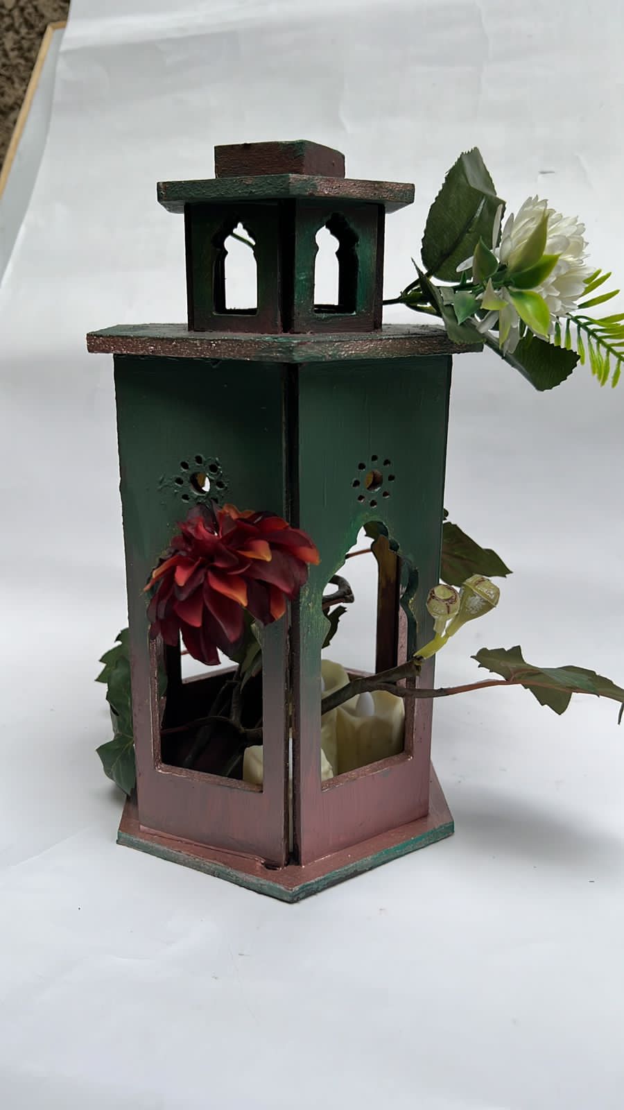 فانوس من الخشب يستخدم كوحده اضاءه في البلكونه او اي كورنر لاضفاء جو شاعري ومهدئ للاعصاب بوضع شموع عطريه فيه مع الورود المحببه يمكن يتنفذ باي لون