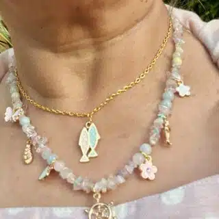 Care for your jewelry: keep it dry. Away from perfume, body lotion. Remove it before bathing, swimming, sleeping.