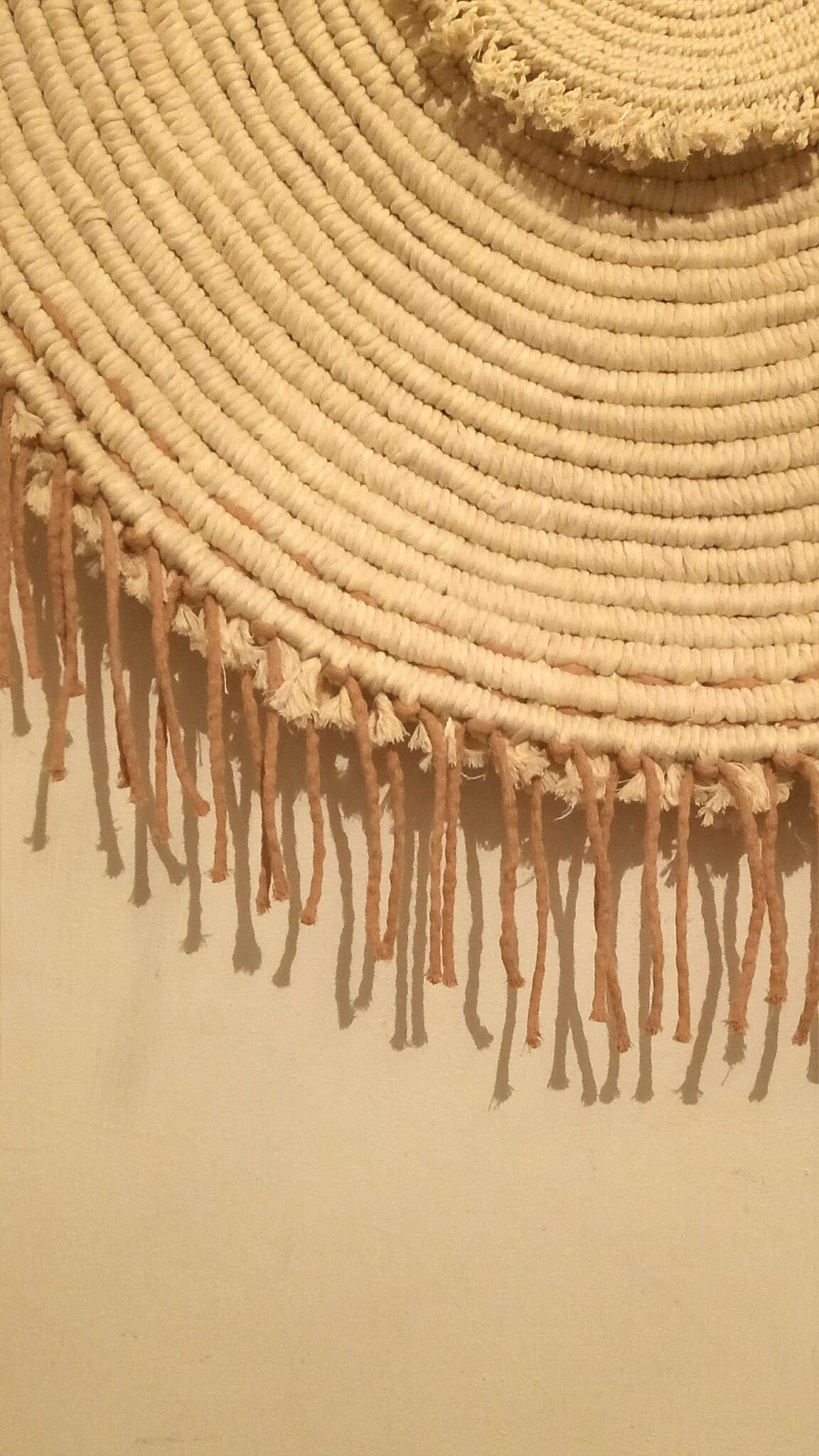 This large macrame fiber art features high quality cotton cord suspended on a wood dowel. The perfect combination of natural materials.