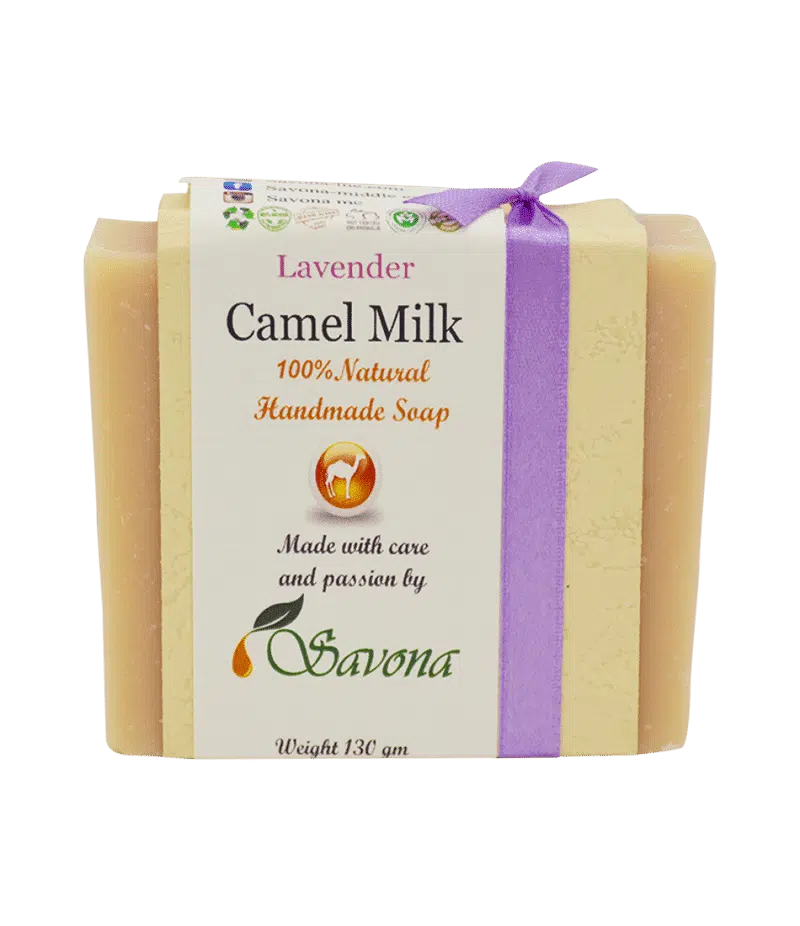 - Wash your stress away with this ultra-smooth Lavender scented camel milk soap bar.