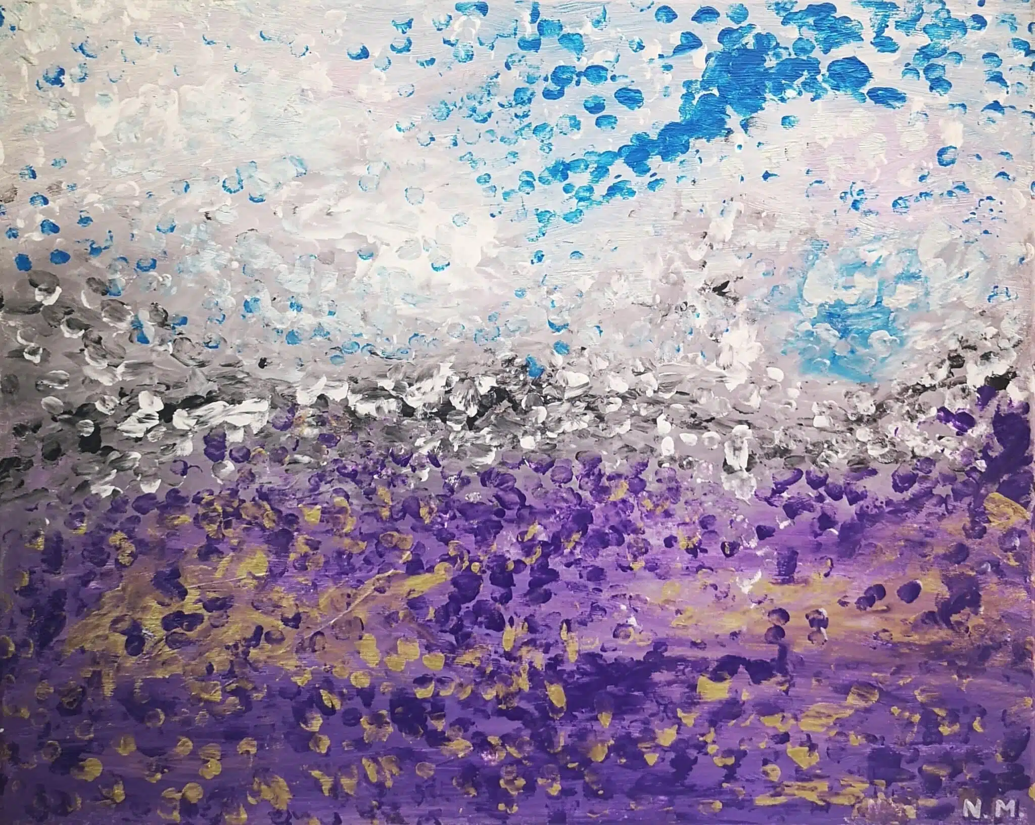 This is an abstract acrylic painting of lavender field on canvas.