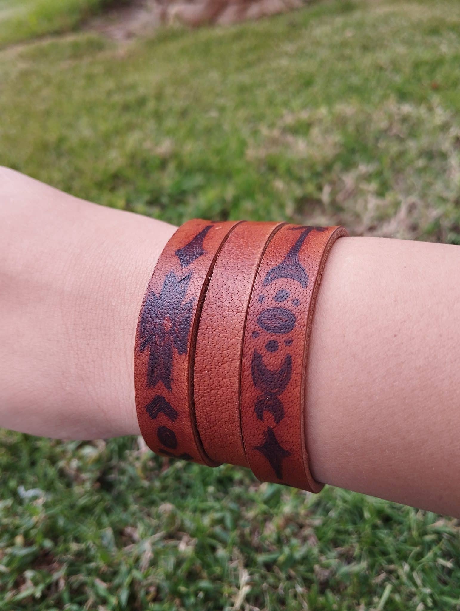 حظاظه من الجلد الطبيعي رسمت فري هاند بصبغات الجلد الطبيعي ممكن اختيار اللون والمقاس