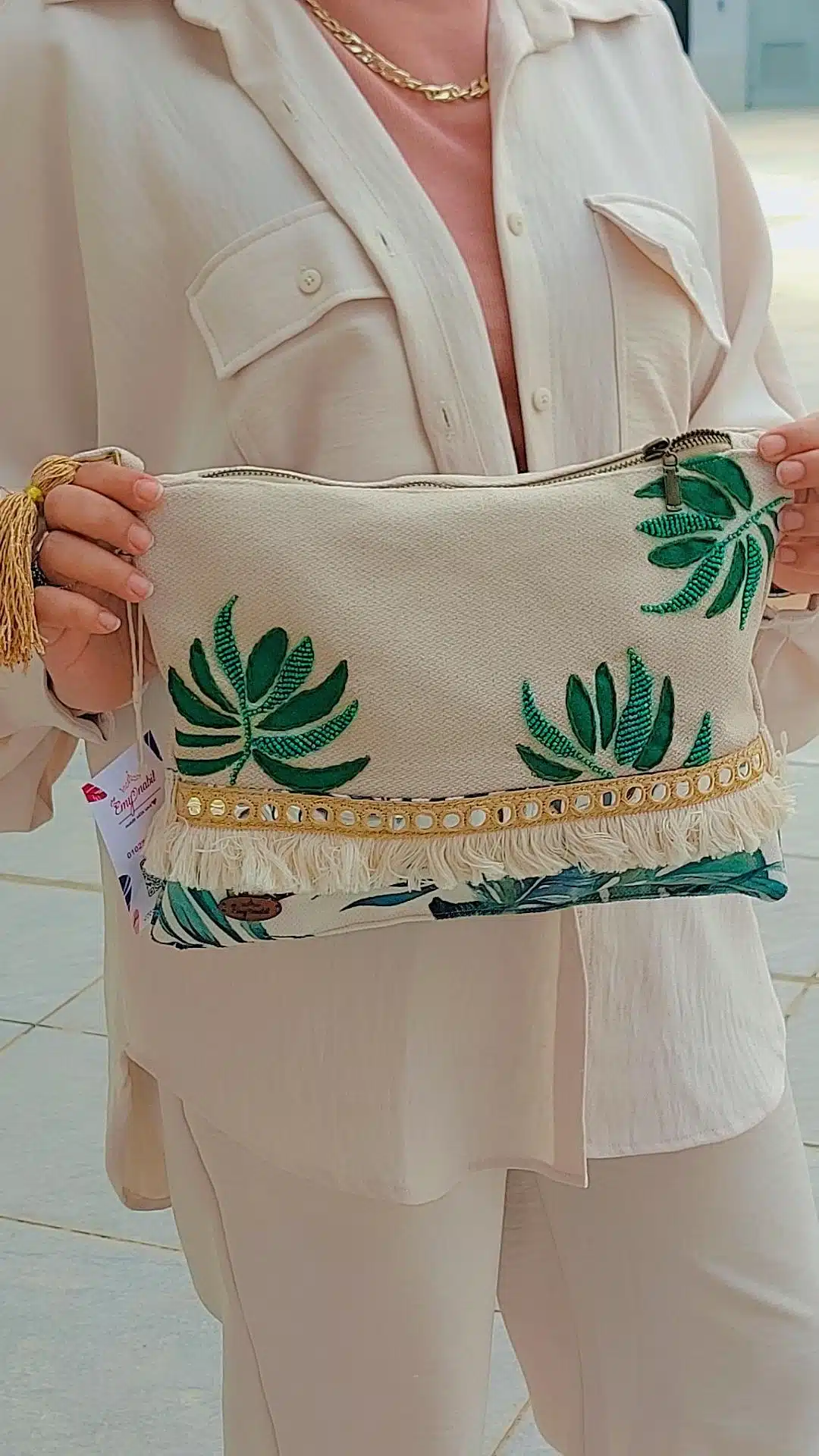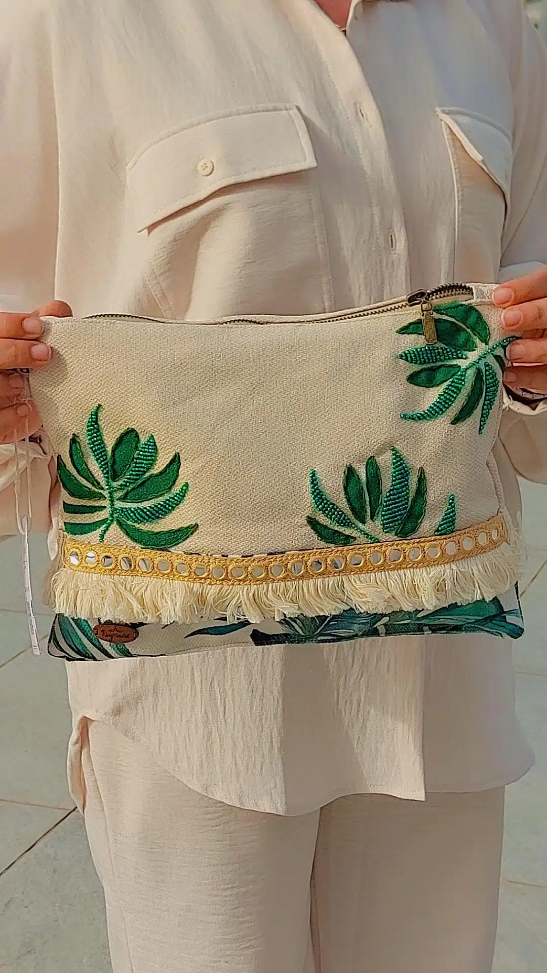 hand painted and bead embroidery cluth bag with small handle without pockets…