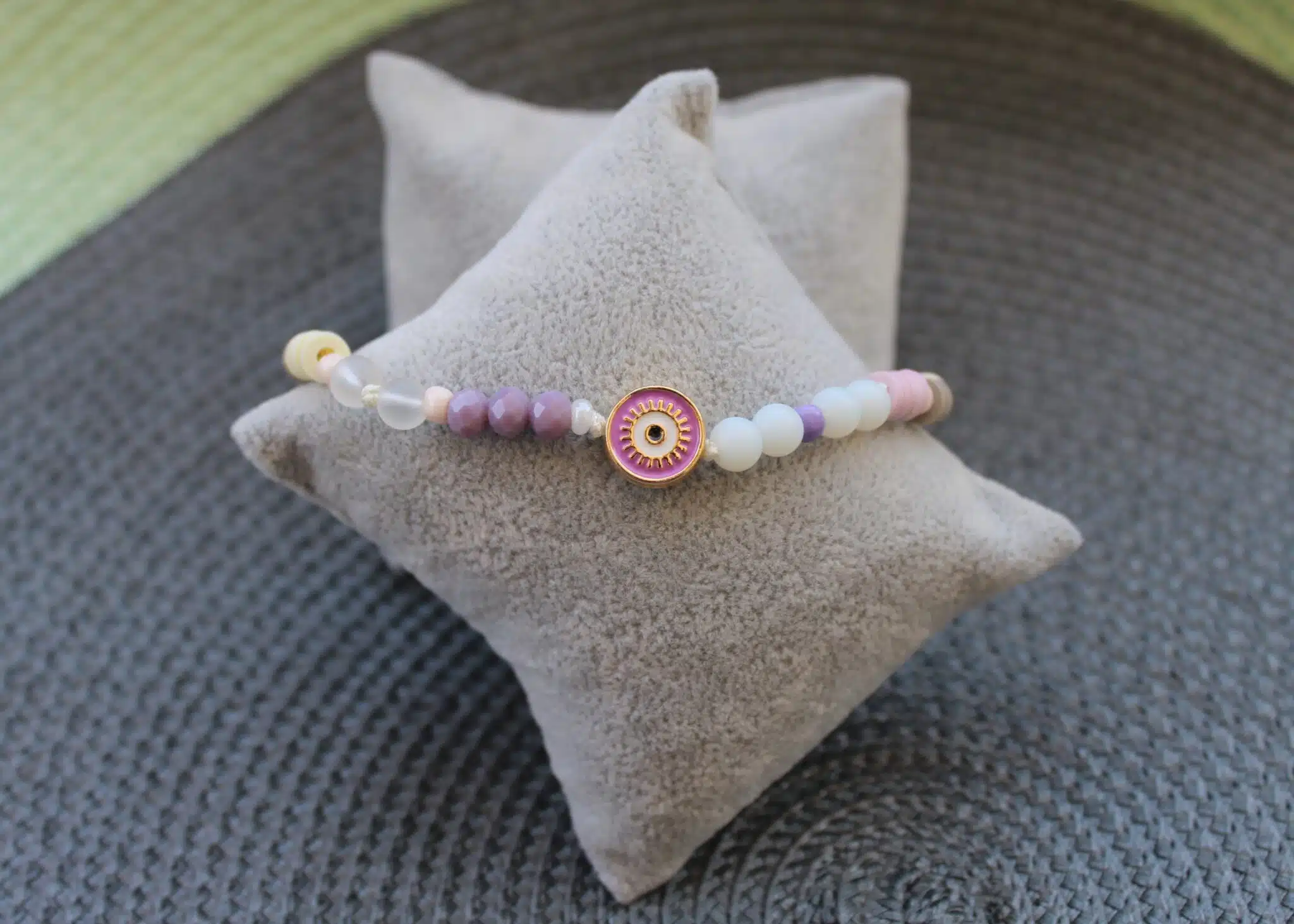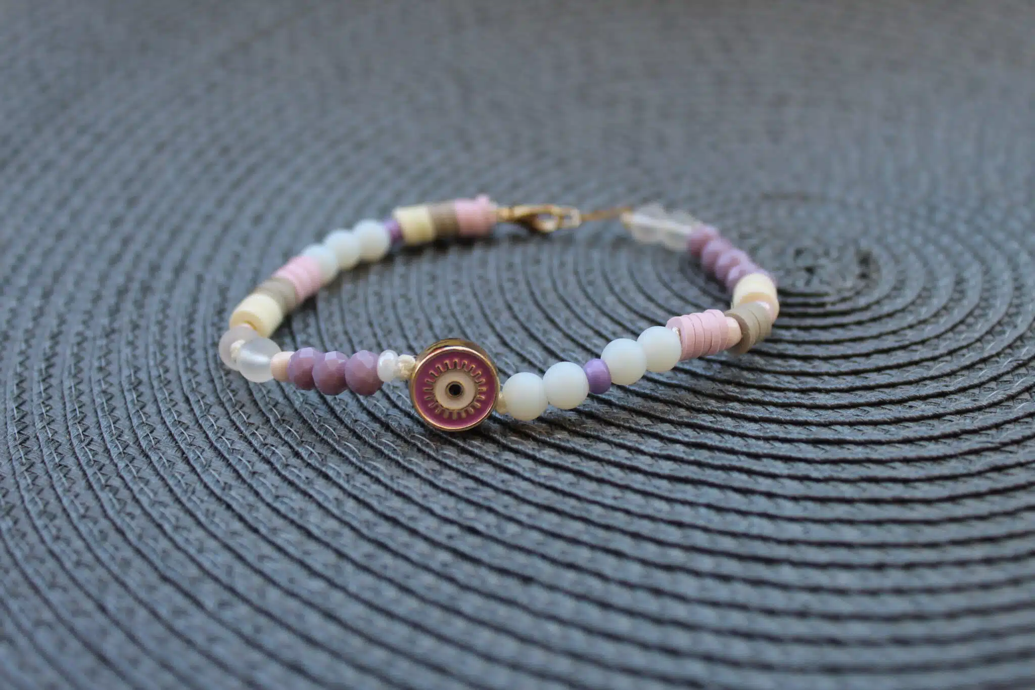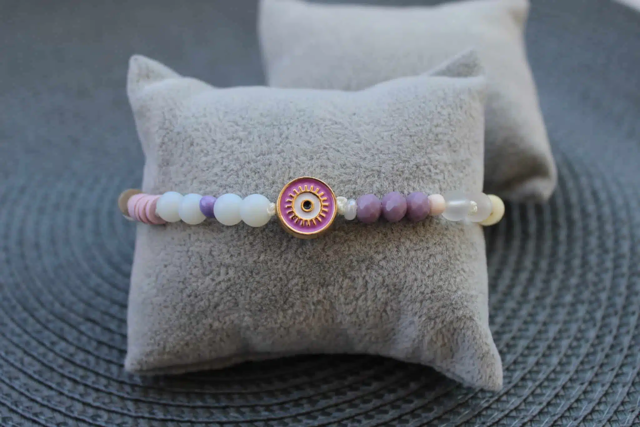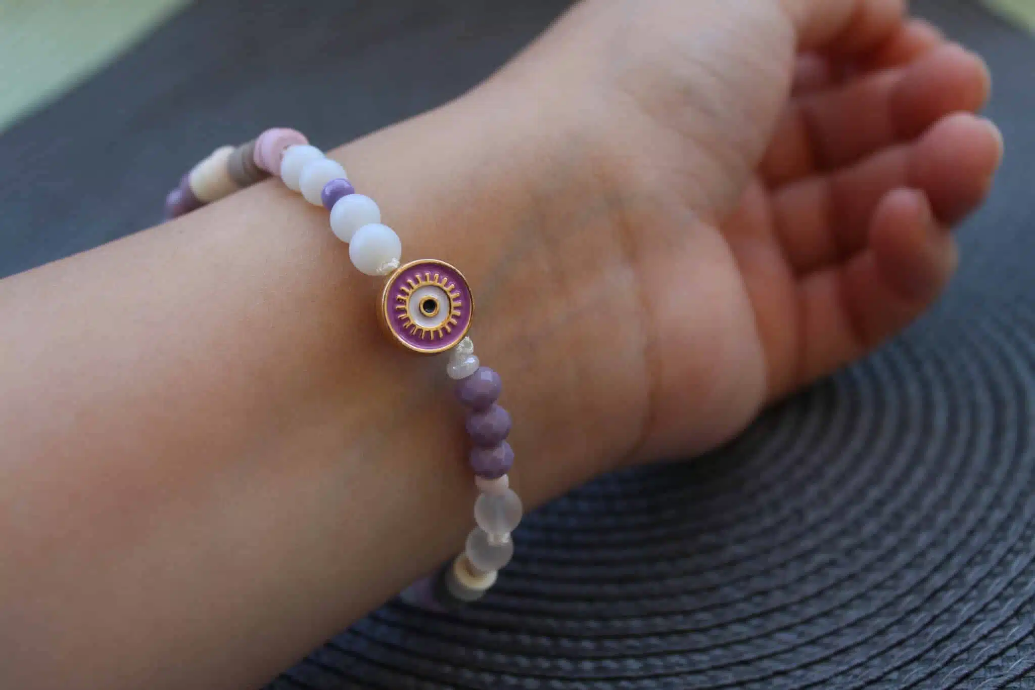 Unique mix of colored evil-eye, white range stones & crystals