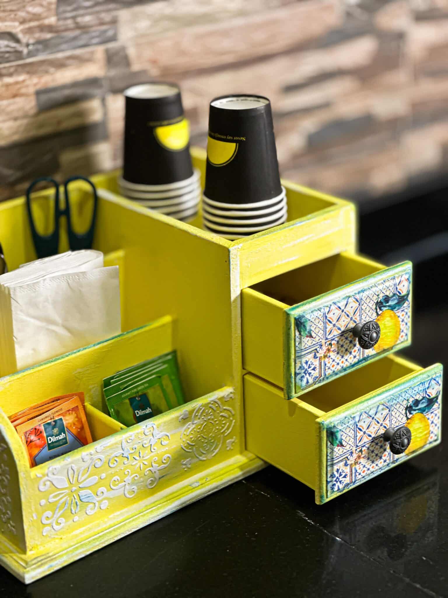 handmade wooden organizer with two drawers and multislots