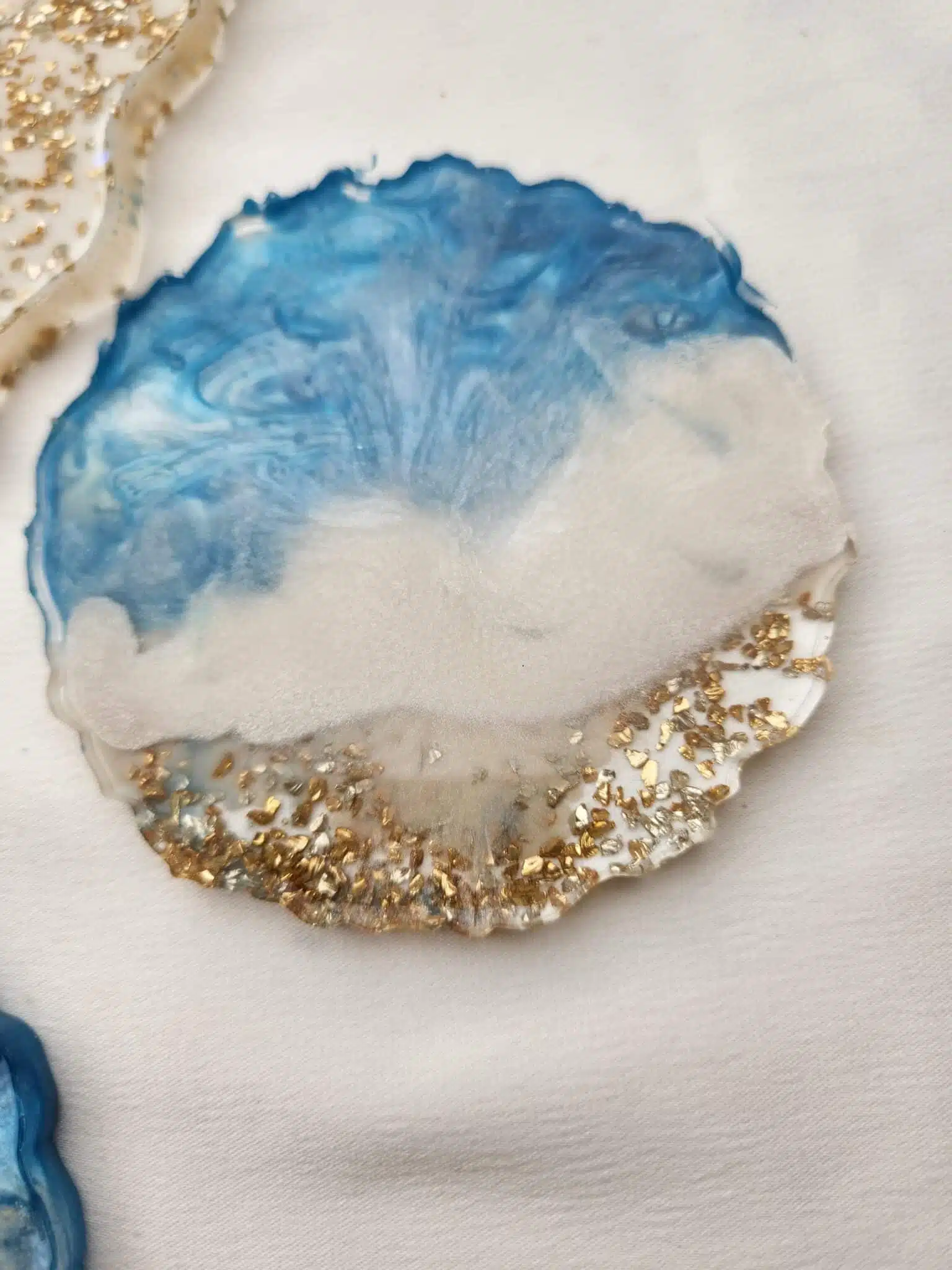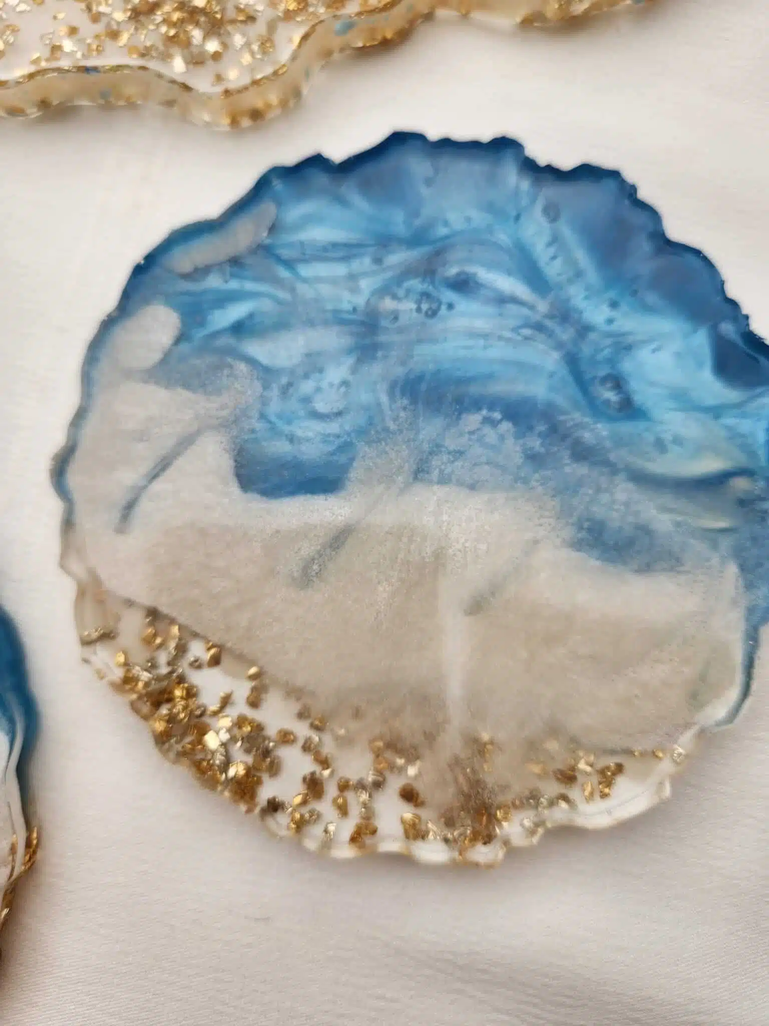 100% handmade coaster set of 4 pieces from resin inlaid with natural seashells ..that could be used to serve hot and cold drinks or simply a piece of art to decorate your table, round freeform shape, approximately 10 cm. Handmade using epoxy resin that is food safe.