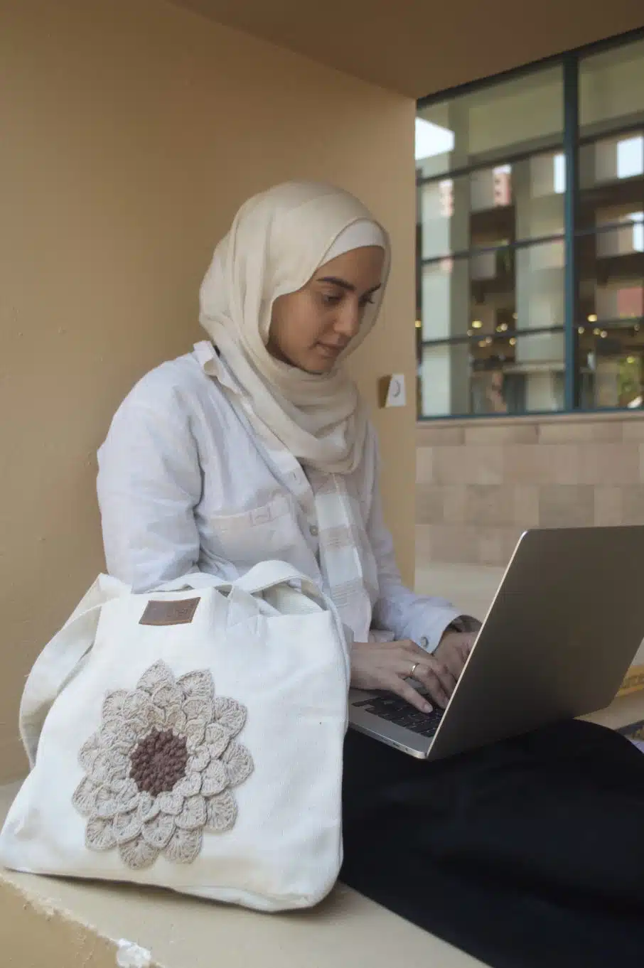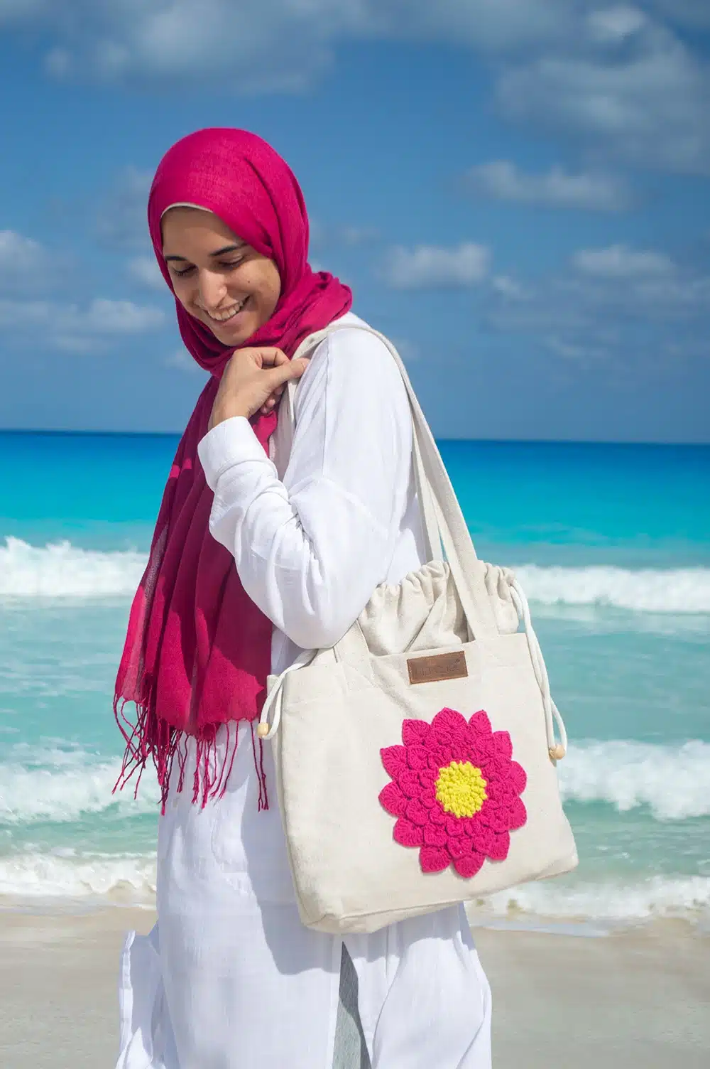 The flower is made of cotton yarn.