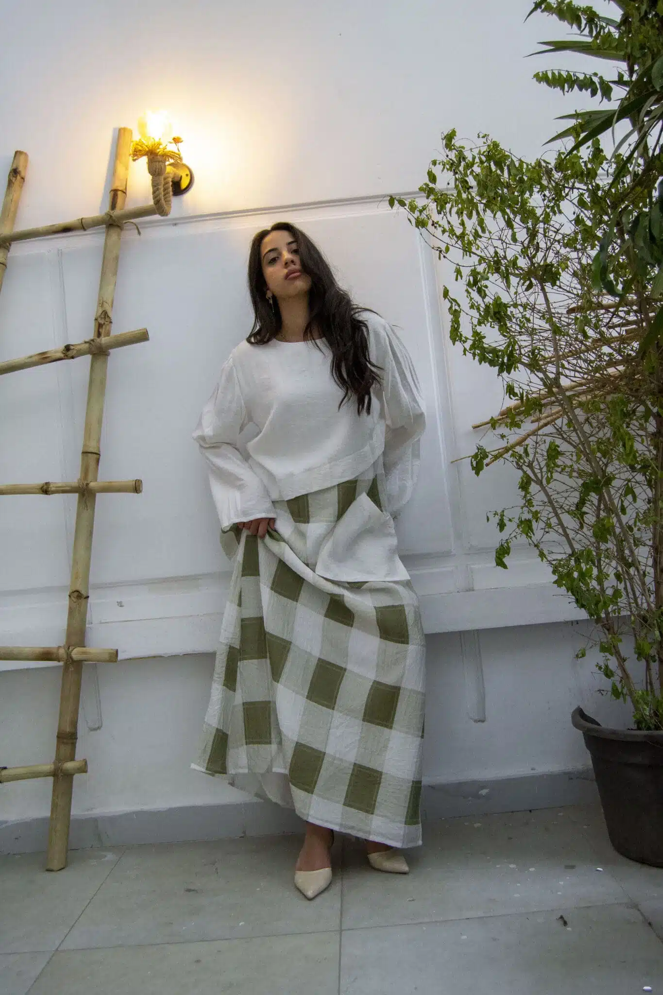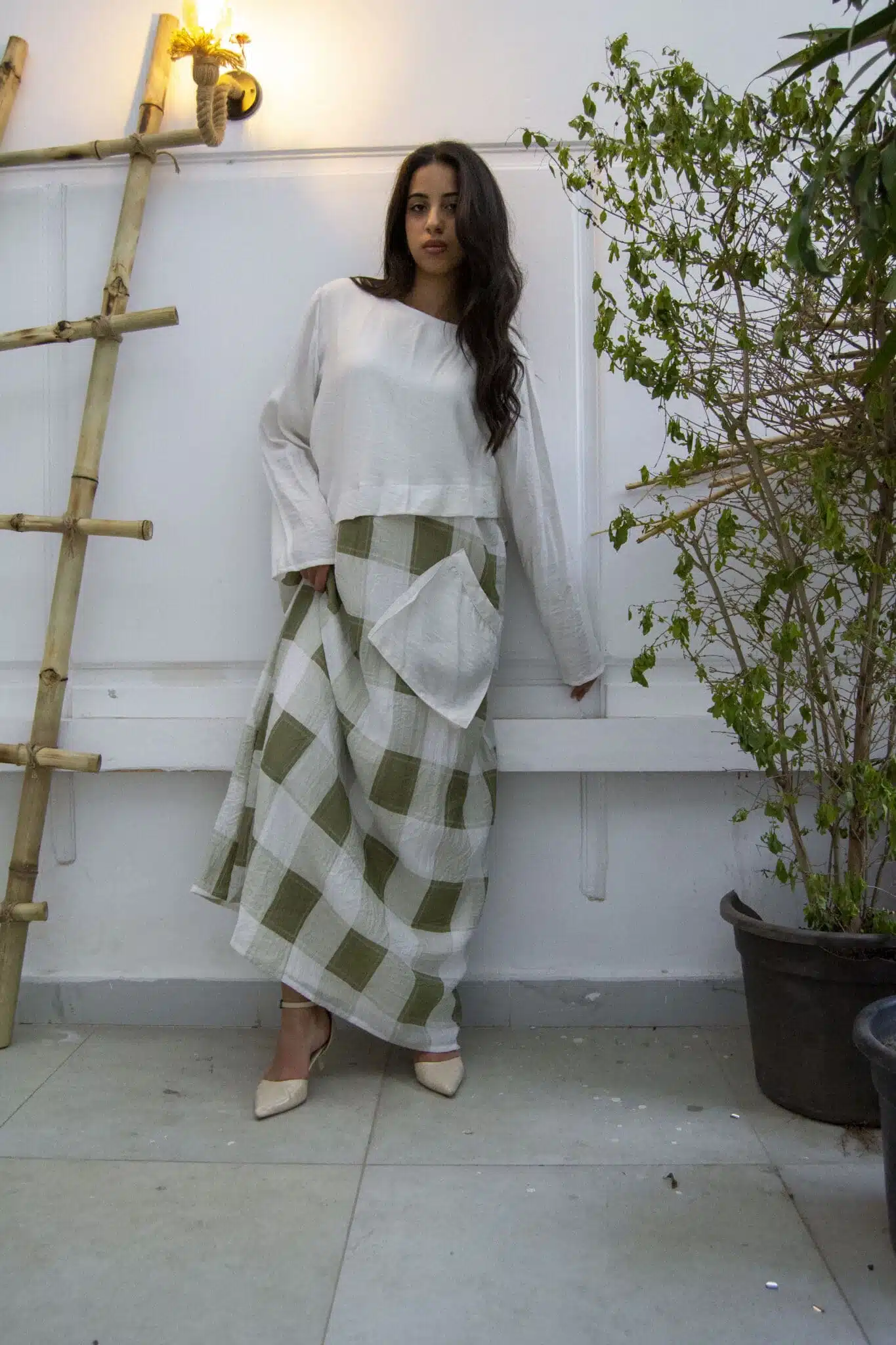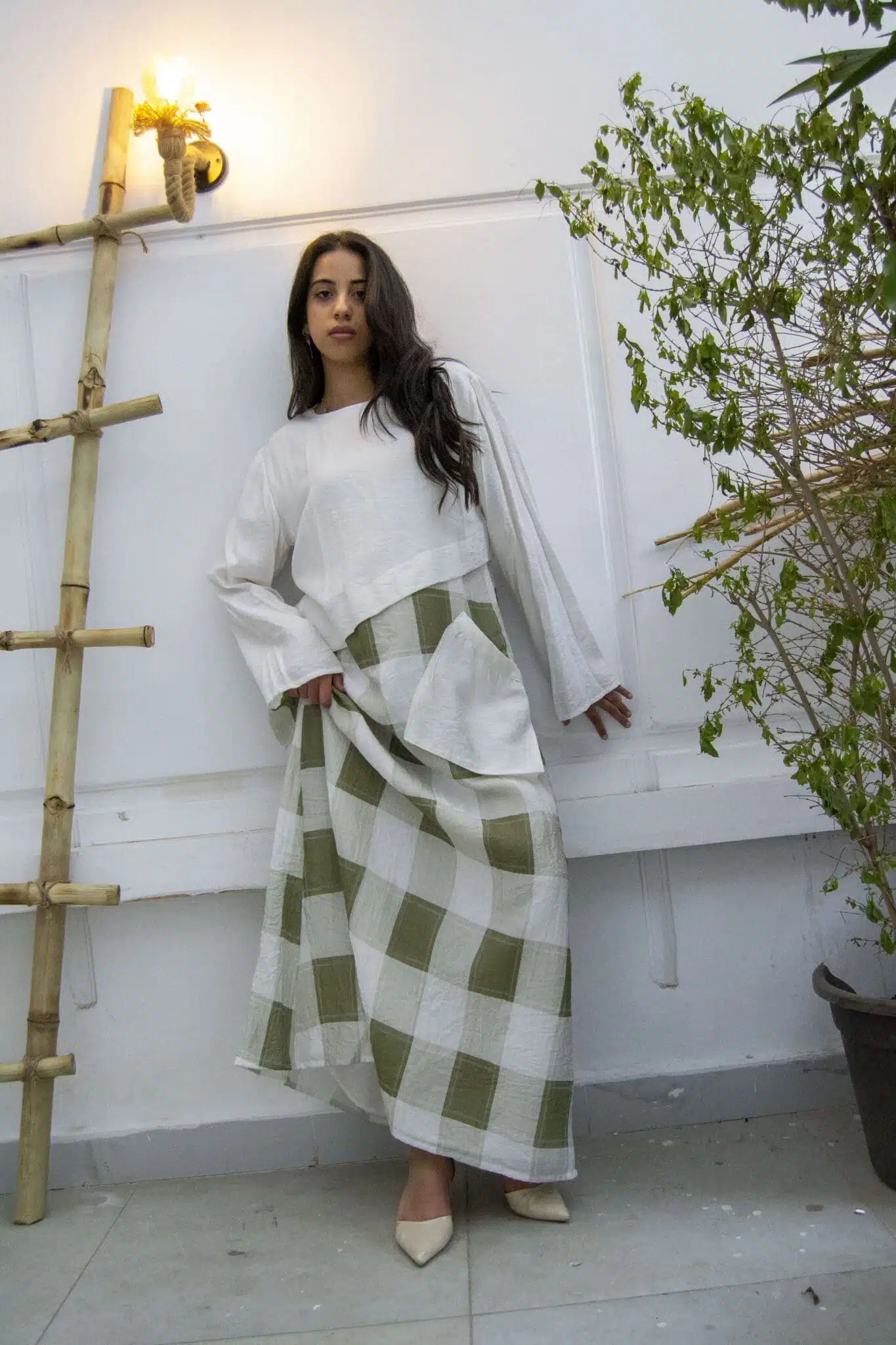 linen check dress فستان كتان كاروهات