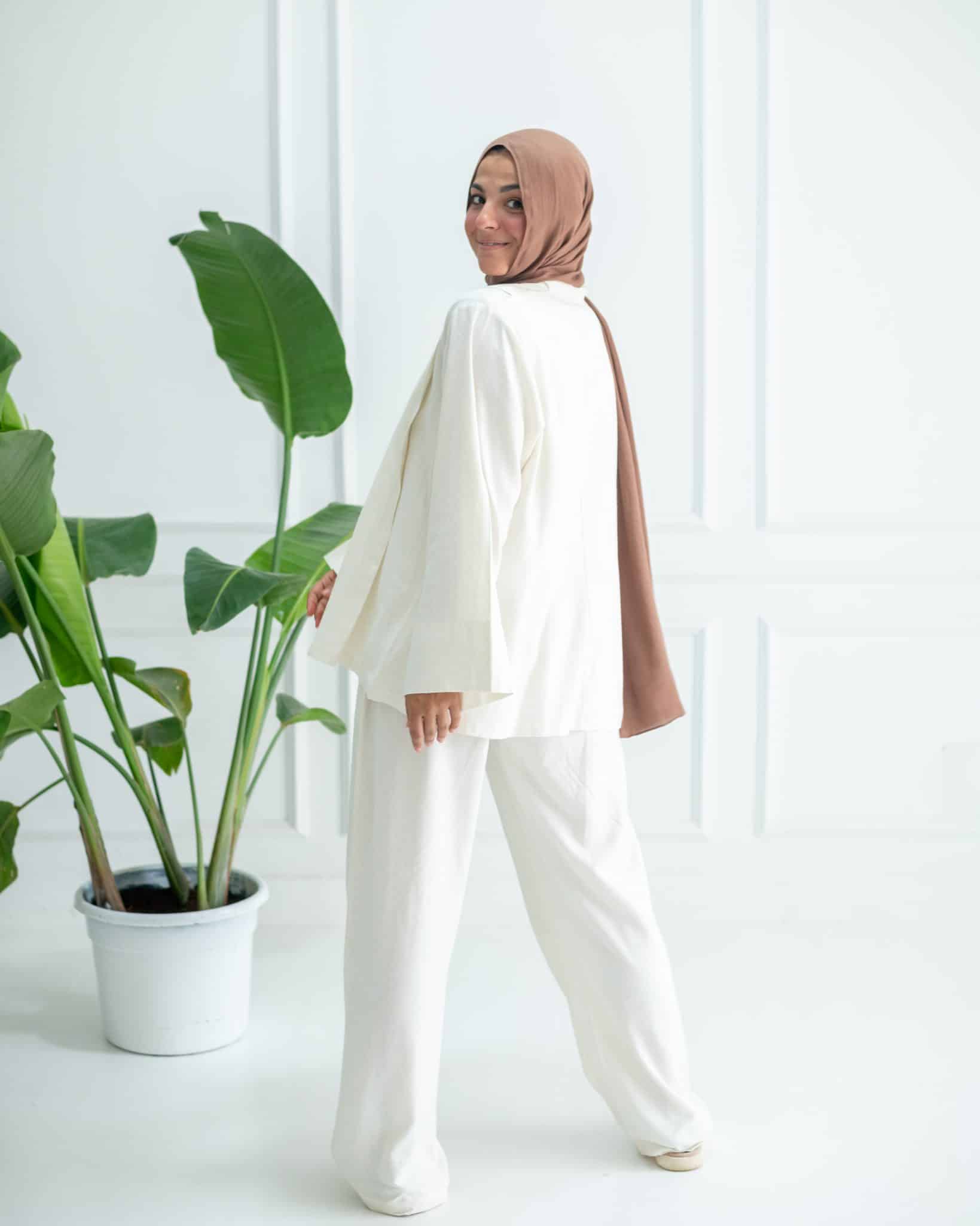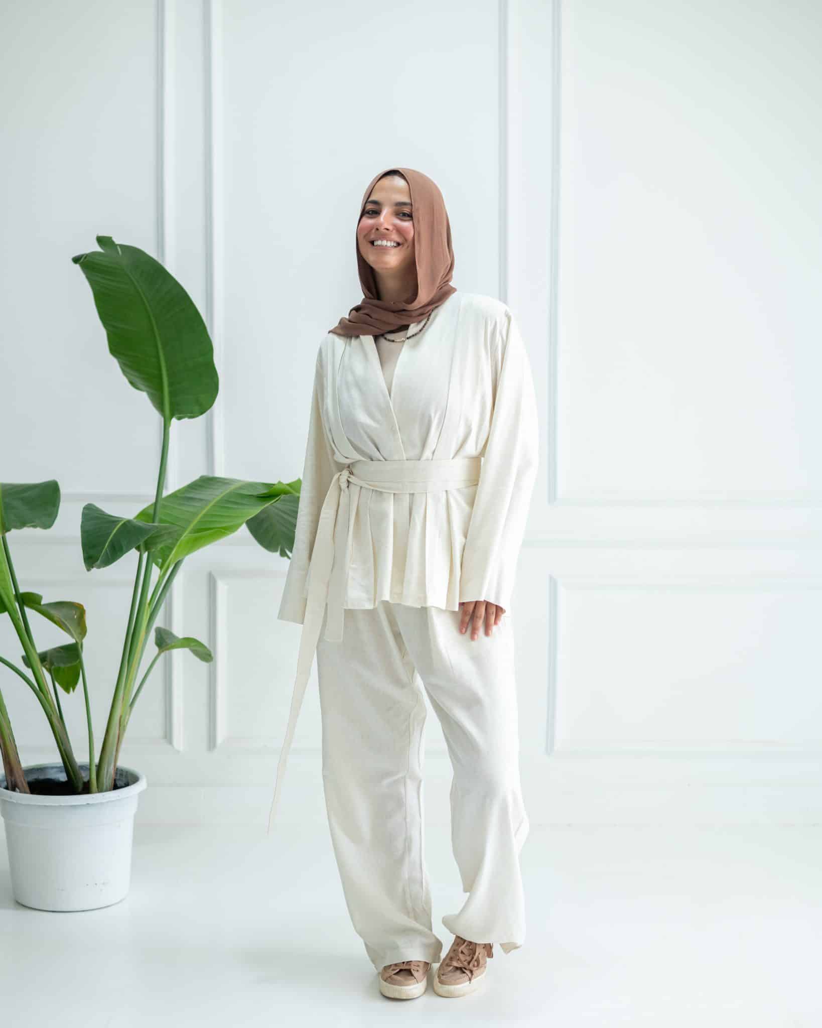 It has a matching linen pant to be wear as a set.