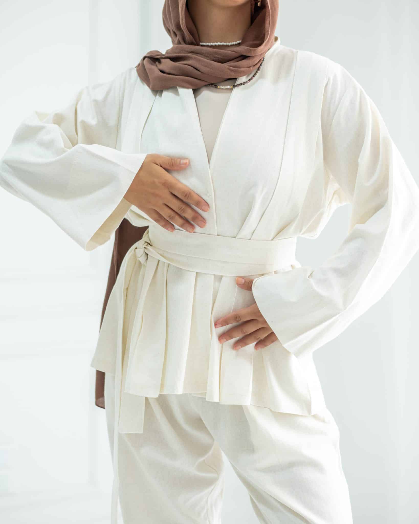 pleated linen blouse comes with belt from same fabric u can style it with many ways so elegant and chic.