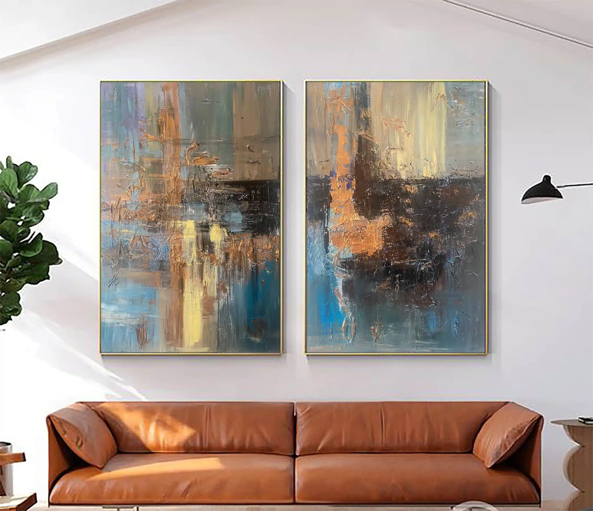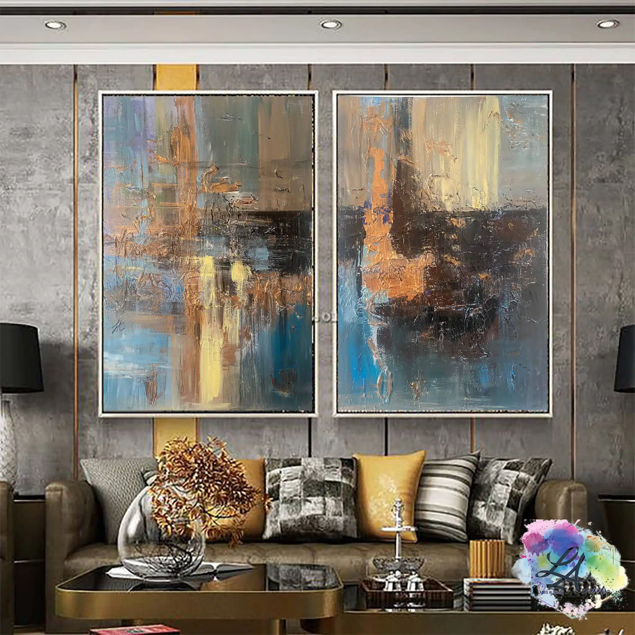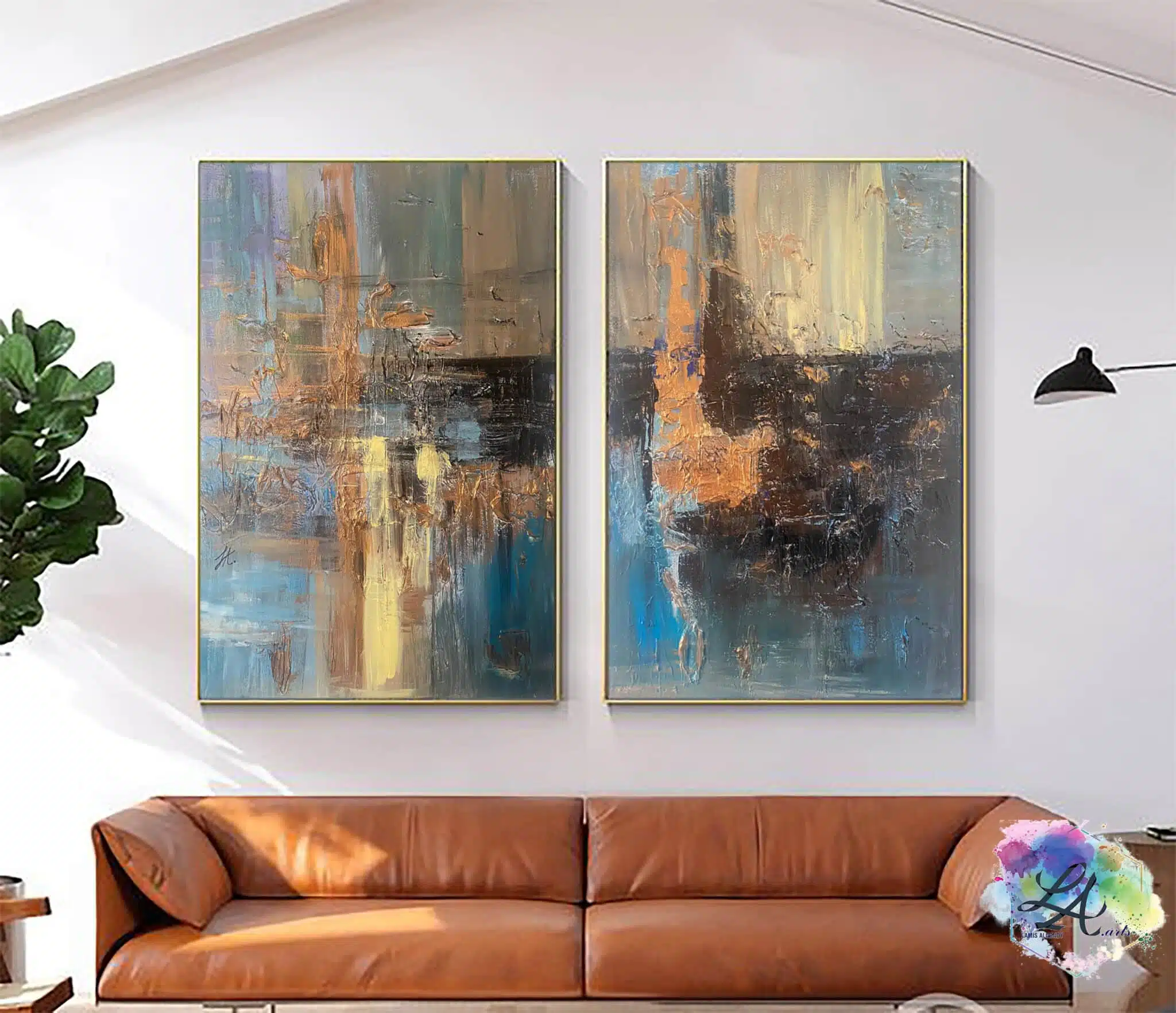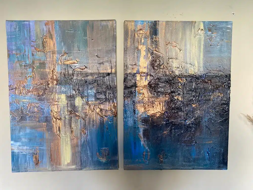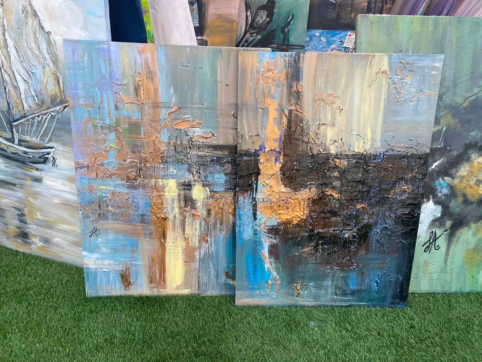 set of 2 canvas size(50×70)cm . acrylic with paste