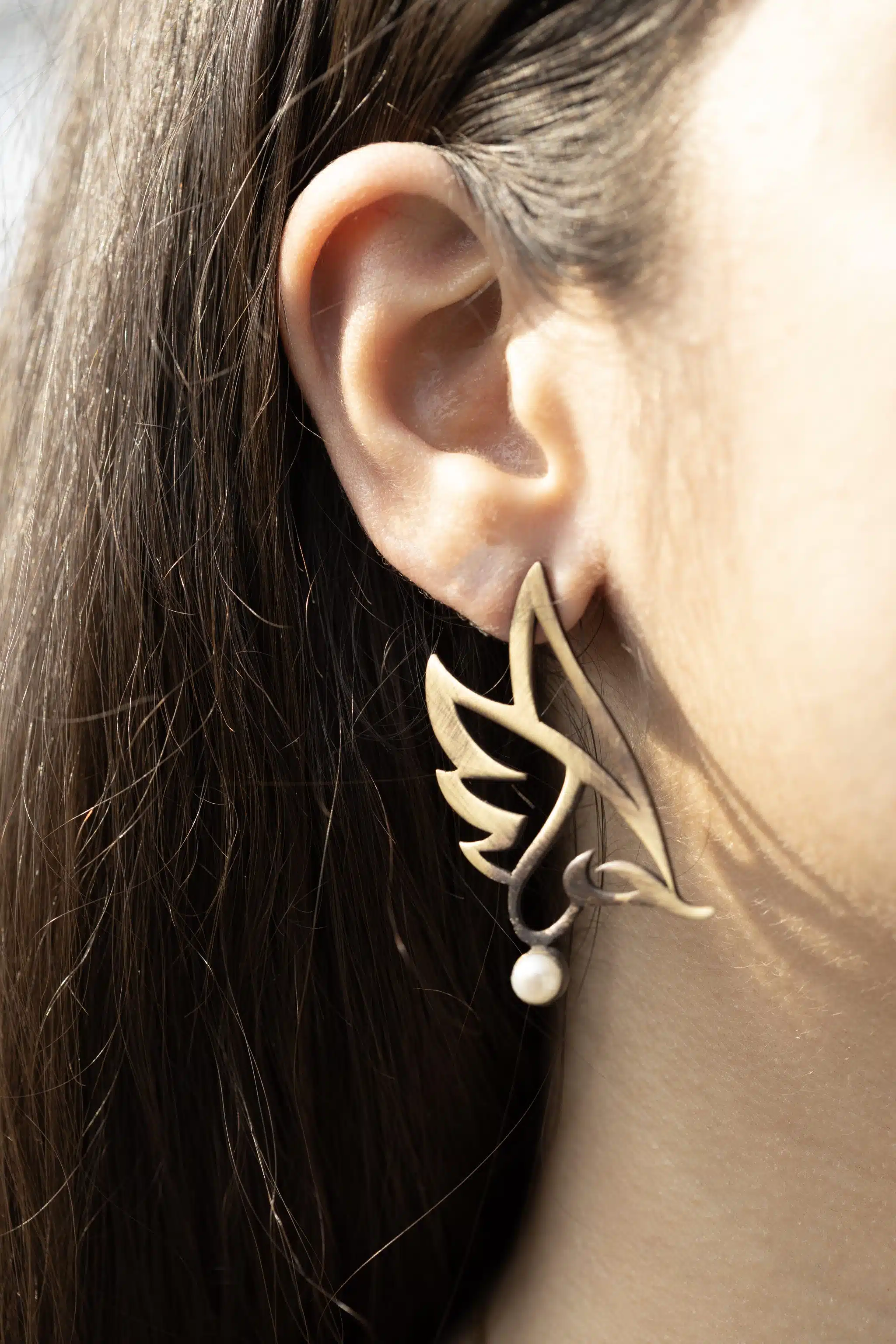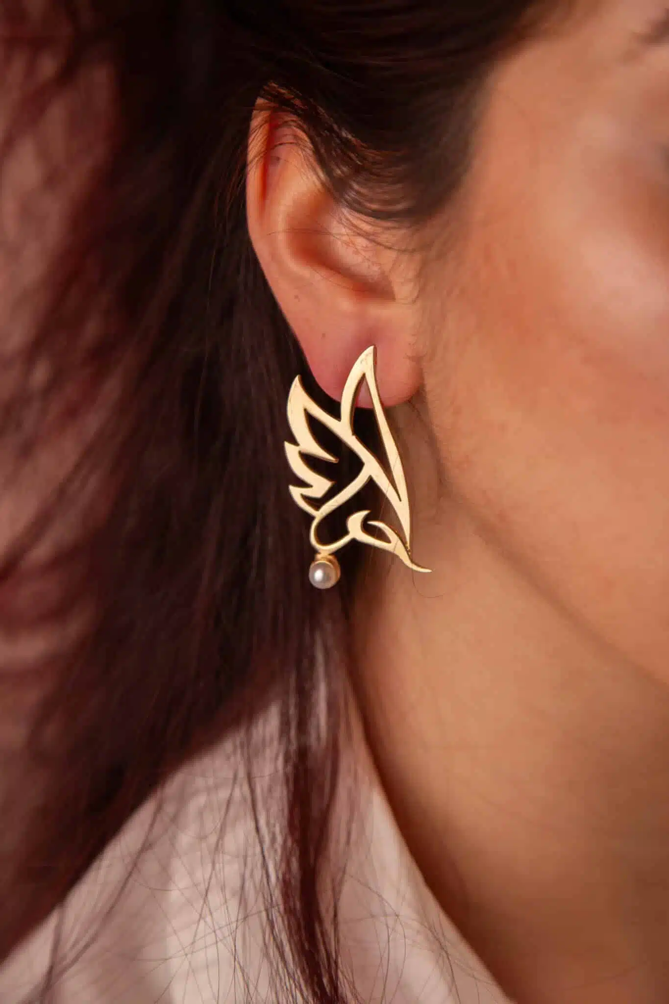 it’s handmade plated brass, inspired from my parrot with word love in Arabic. With pearl gemstone.