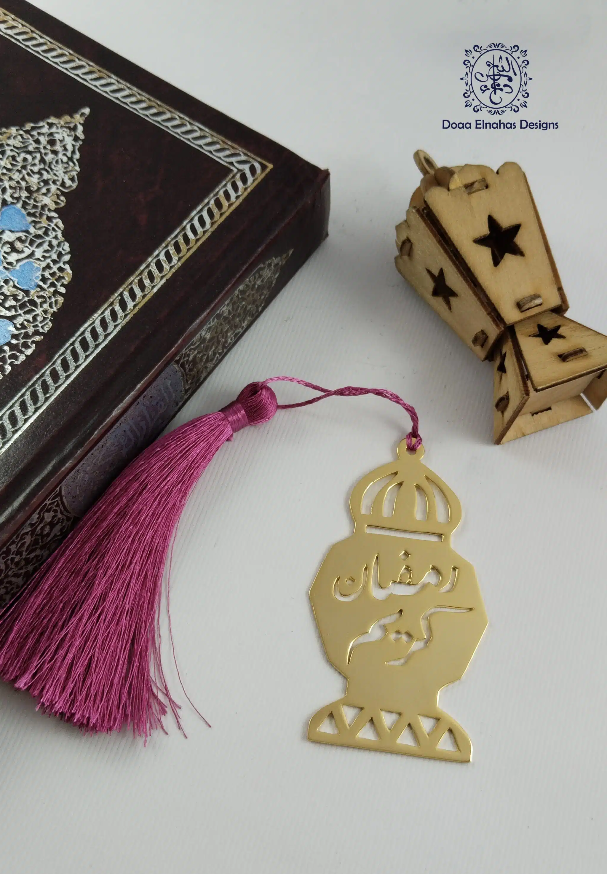 Gold-plated brass bookmark. Ramadan lantern with Arabic calligraphy “رمضان كريم”