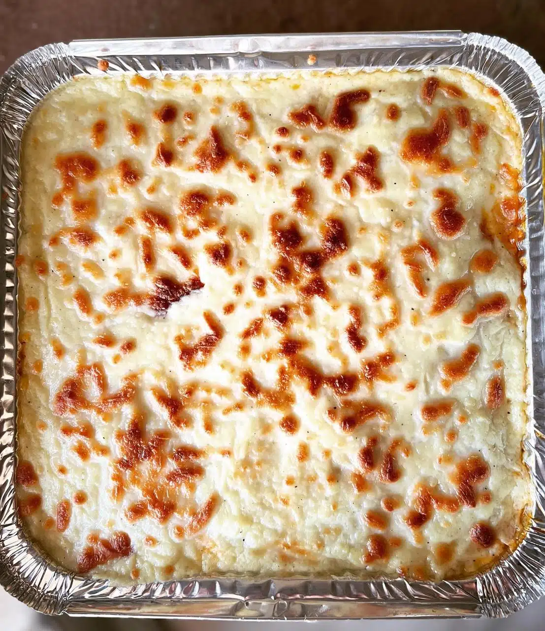 A combination of macaroni penne, filled with minced beef and bolognaise sauce and coated with a juicy bechamel and mozzarella cheese