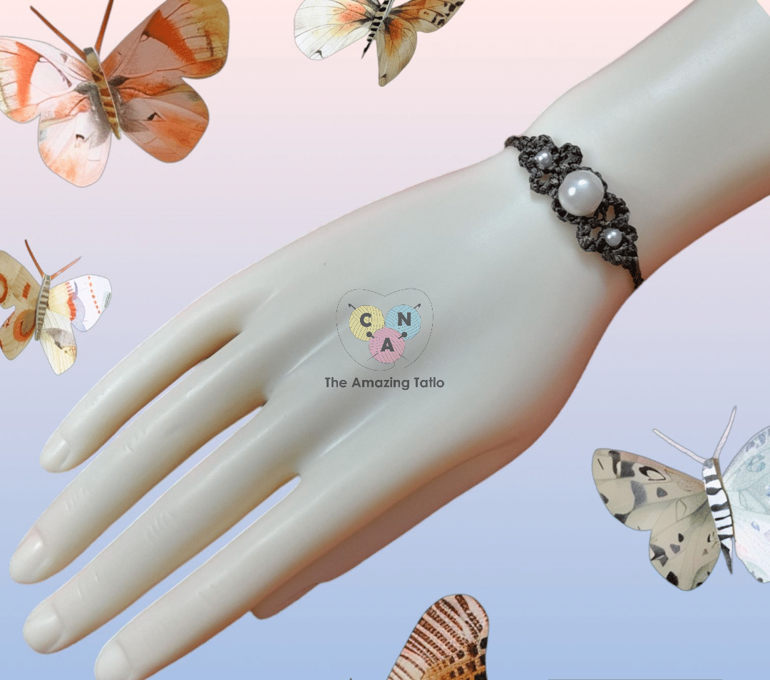 Material: macrame threads,  pearl beads