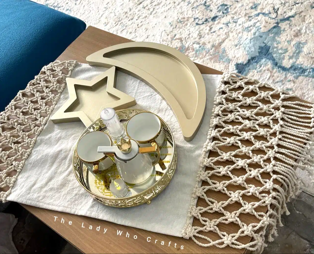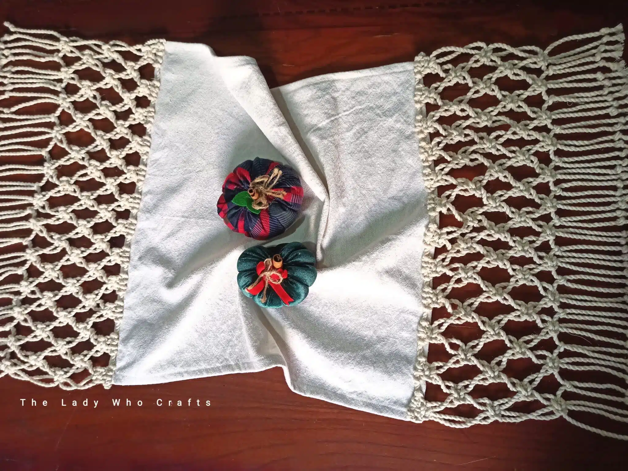 1. Simple and elegant macrame & fabric table runner πŸ’›βœ¨